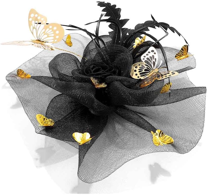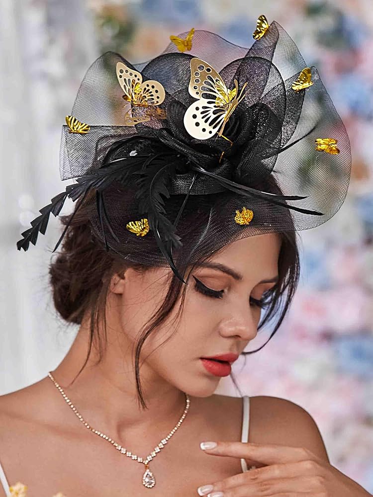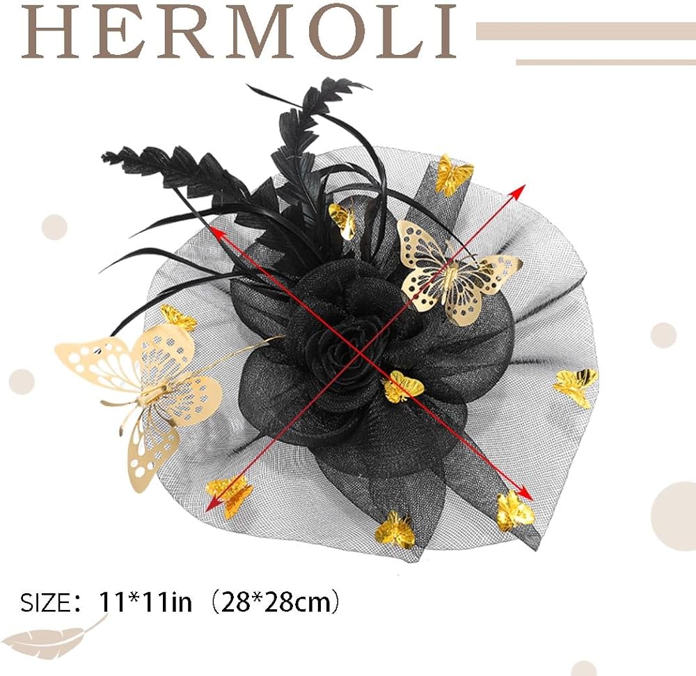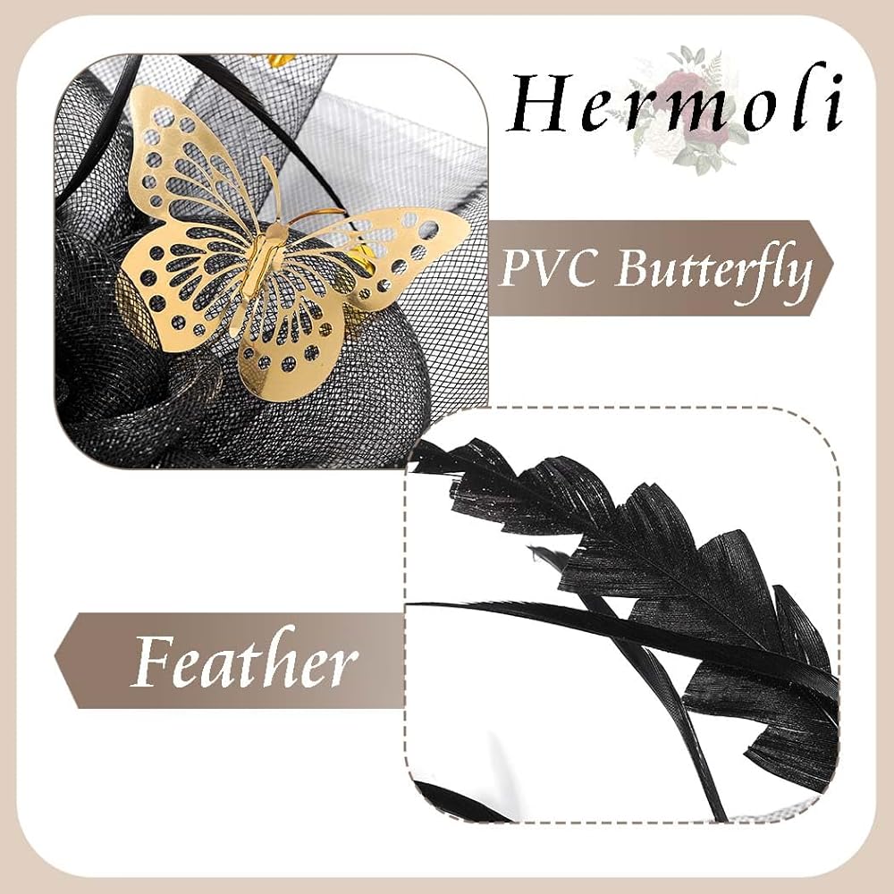 قبعات هيرمولي فاسيناتورز، ريش فراشة شبكية، زهرة سوداء وذهبية لحفلات الهالوين وحفلات الشاي للفتيات