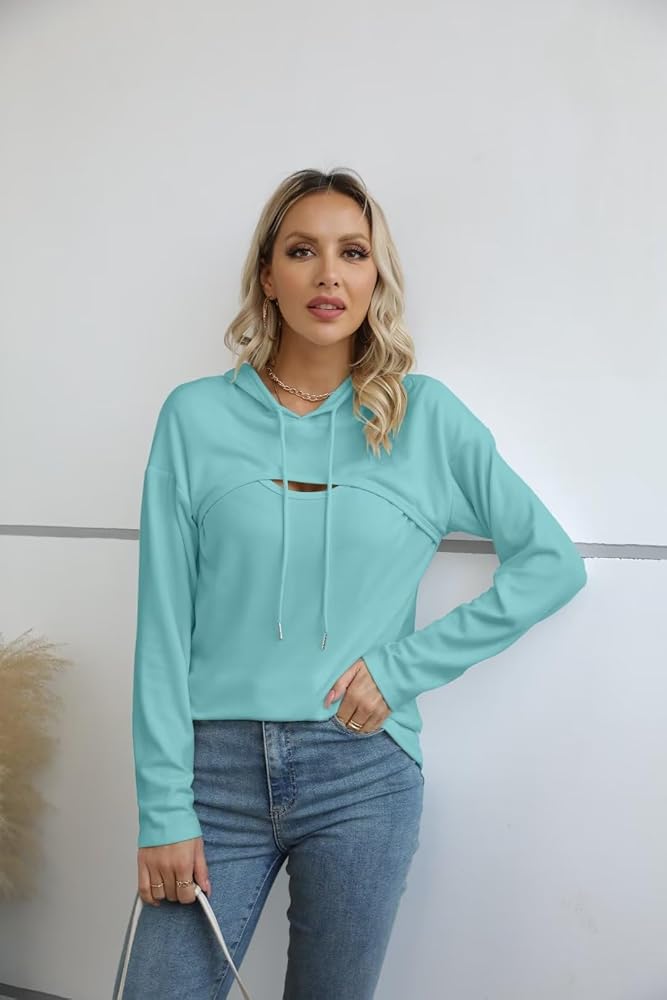 تصميم فريد: بلوفر بأكمام طويلة للنساء / هوديس متماسكة مضلعة للنساء / ملابس خريفية للنساء 2023 / بلايز مقصوصة مثيرة للنساء / بلايز مقصوصة للنساء / بلوفرات فضفاضة للنساء / تي شيرت عادي كاجوال مع غطاء رأس للصغار