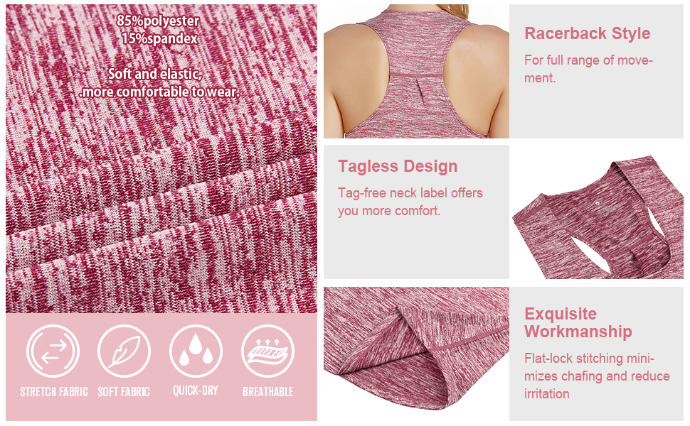 【ظهر المتسابق】: قميص بدون أكمام للسيدات للتمرين بتصميم ظهر متسابق، يزيد من نمط الموضة، ويحافظ على تدفق الهواء، ويوفر لك راحة إضافية.