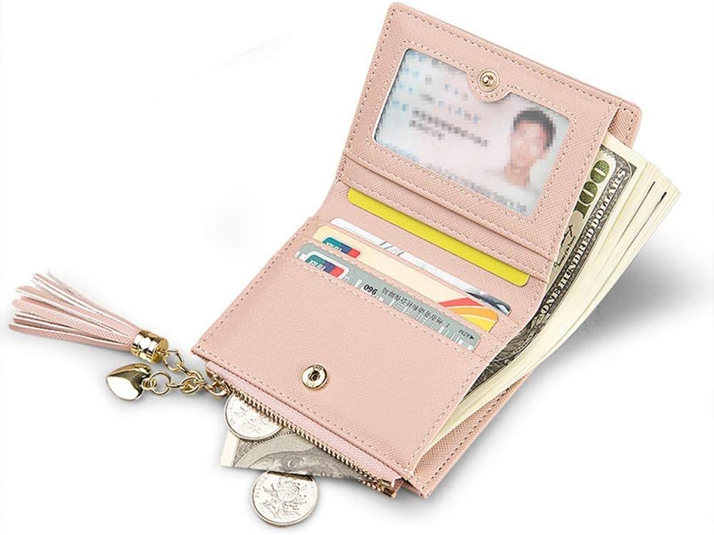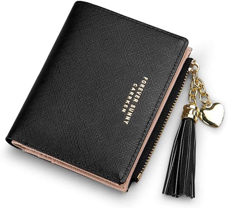 Small Wallet for Women Slim Bifold Card Holder Minimalist Tassel Zipper Coin Pocket