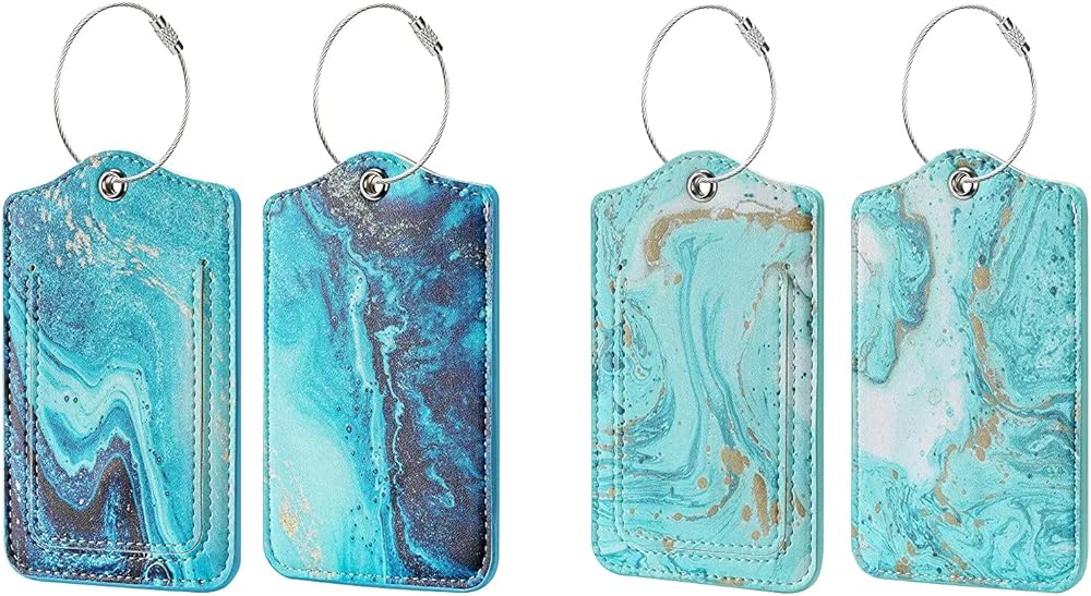 - This pack contains four PU Leather Luggage Tags with Stainless Steel Loop