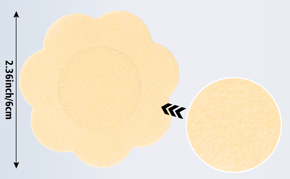 نصيحة: نظرًا لتنوع البشرة، لا يمكننا أن نضمن أنه سيناسب جميع الأشخاص؛ نوصي الأشخاص الحساسين بالاختيار بعناية. بالنسبة لأولئك الذين يعانون من بشرة حساسة، لا ترتدي فطائر الثدي لفترة طويلة، ولا تنامي بها.