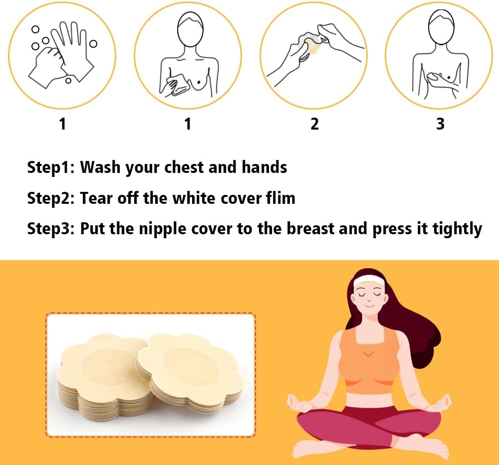 تغطية مريحة، سهلة الارتداء: إنها خفيفة جدًا بحيث لا تغير أغطية الثدي شكل صدرك، ولا يمكن اكتشافها تحت قمصانك، تغطية مريحة ومنفصلة جدًا، أغطية الحلمات هذه مثالية وتتناسب مع بشرتك عظيم. سهل الاستخدام للغاية، وجيد التهوية (لا تجعل حلماتك تتعرق أو تنبعث منها رائحة كريهة مثل حلمات السيليكون)