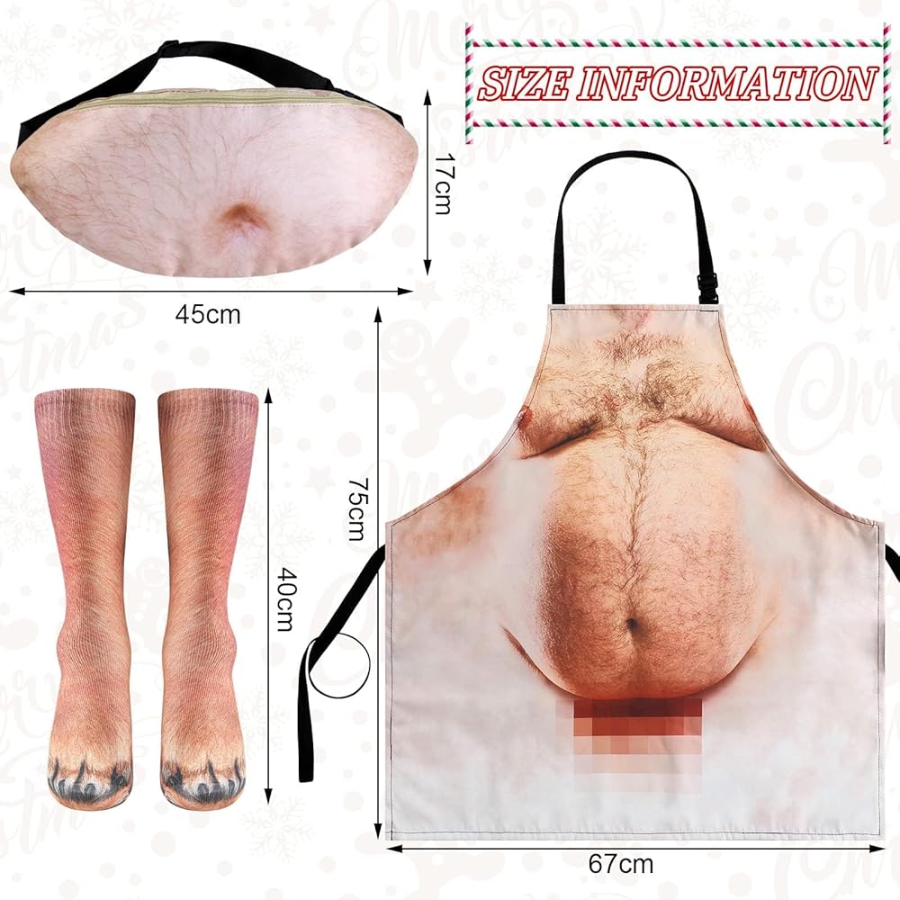 المقاس المناسب: الجوارب المسلية حوالي 40 سم/ 15.75 بوصة، مقاس البالغين يناسب معظم الرجال والنساء، حقيبة البطن حوالي 45 × 17 سم/ 17.72 × 6.69 بوصة، المريلة حوالي 67 × 75 سم/ 26.38 × 29.53 بوصة يرجى الرجوع إلى المقاس بعناية قبل الاختيار