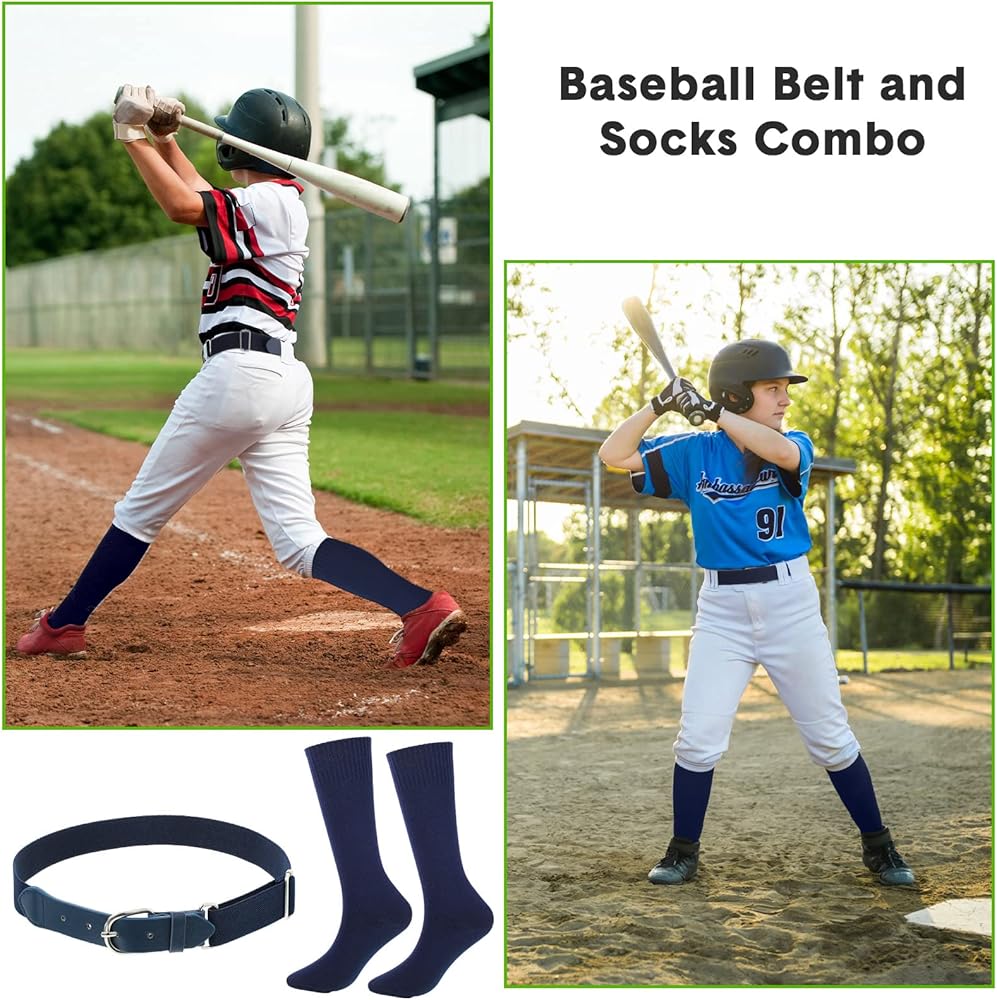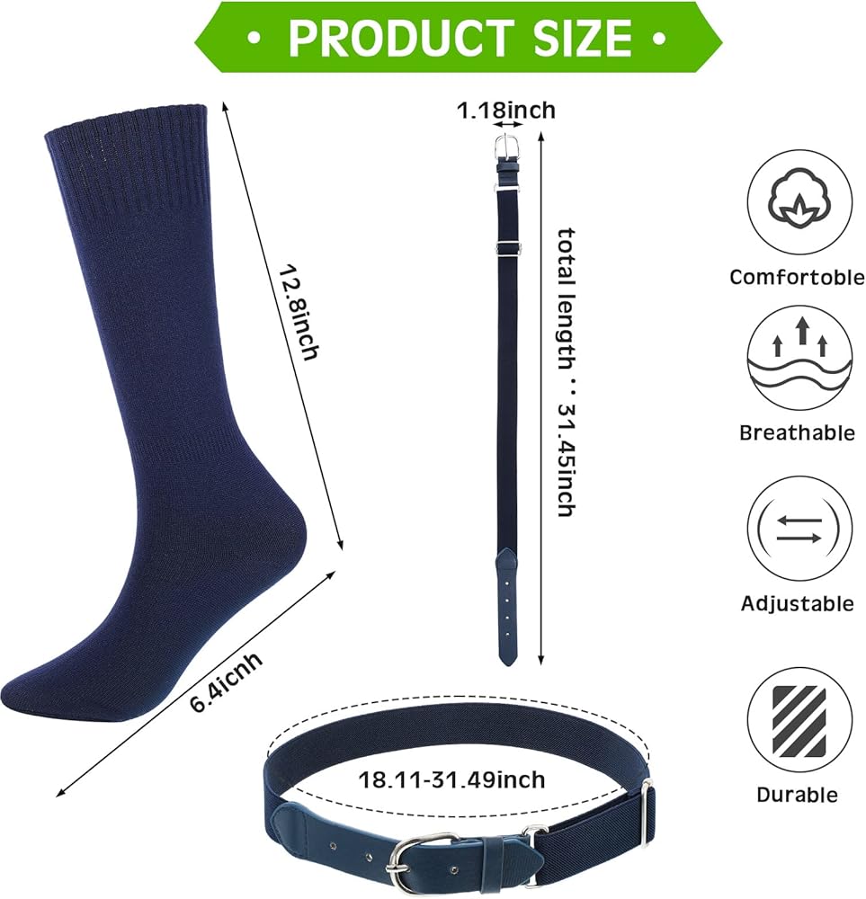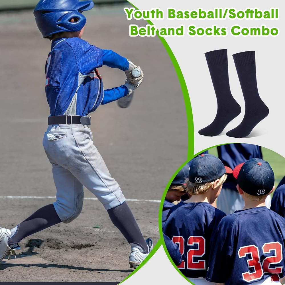 The youth softball sock and belt are in solid navy blue, simple and classic, easy to match with your different outfits, making you stand out from the crowd.