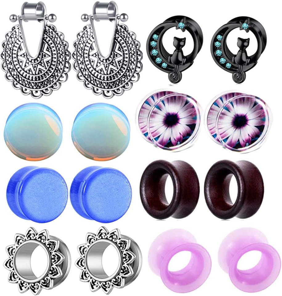 تحتوي كل مجموعة على 8 أزواج من أنفاق الأذن، نفس المقاس بنمط مختلف. الأحجار الطبيعية المصنوعة من السيليكون والفولاذ المقاوم للصدأ جميعها ستمزج من أجلك