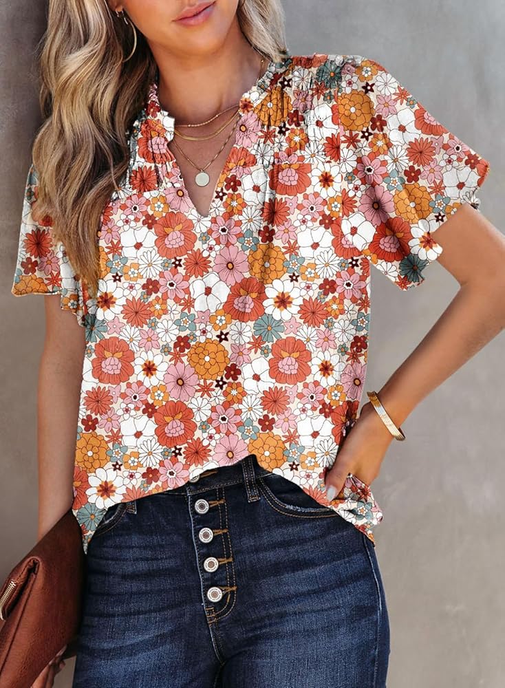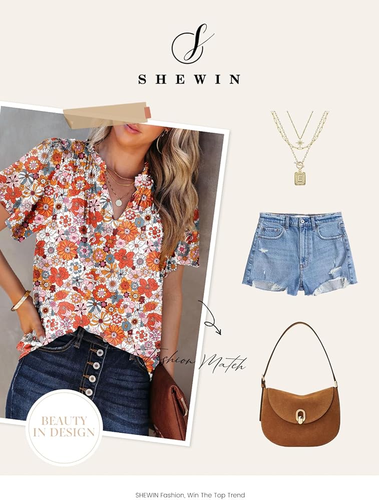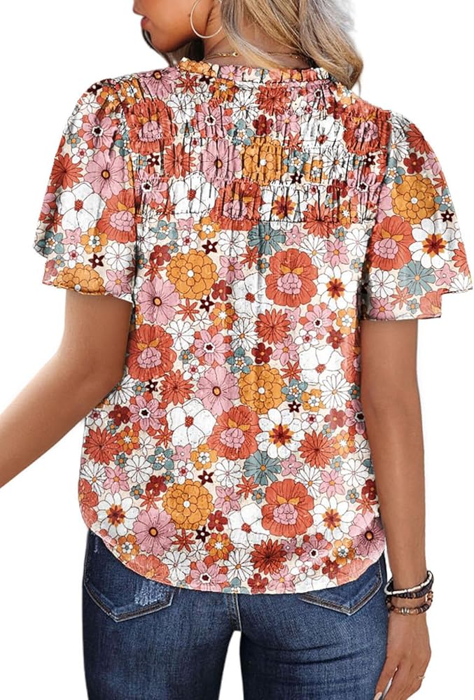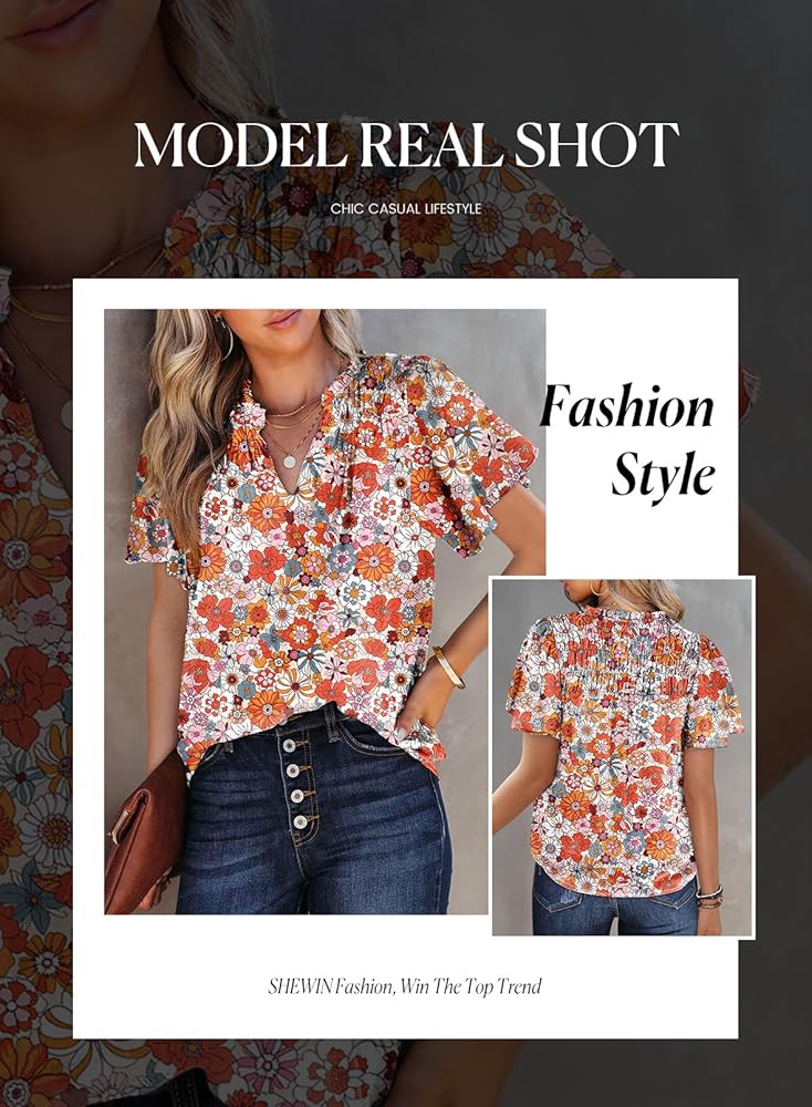 المزايا: قميص بوهو عصري مطبوع عليه زهور للنساء، بلوزات شيفون كاجوال مثيرة، رقبة على شكل حرف V، ظهر مكشوف، أكمام قصيرة مع تصميم مكشكش، مقاس مريح.