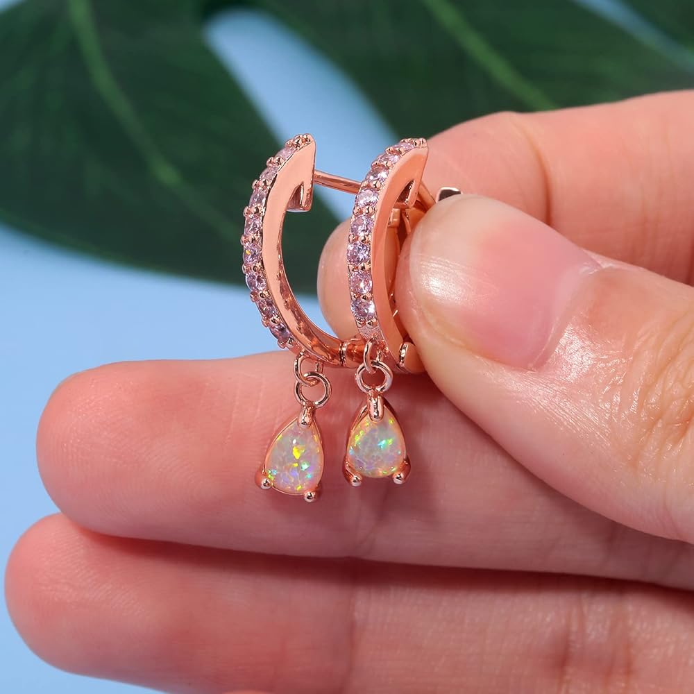 ❤ أقراط دائرية رائعة ❤ أقراط دائرية مع سحر فريد من نوعه من حجر الأوبال الوردي البيضاوي. أقراط متدلية رائعة وأنيقة تجعل المرأة تضفي أناقة خاصة ونبيلة.