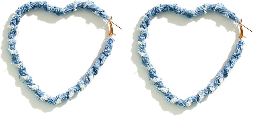 Blue Denim Hoop Earrings for Women, Minimalism Exaggerated Big Heart Hoop Earrings, Boho Cool Jeans Cloth Heart Earrings for Women Statement Earrings, Bohemia Jewelry Accessories for Women Girls,