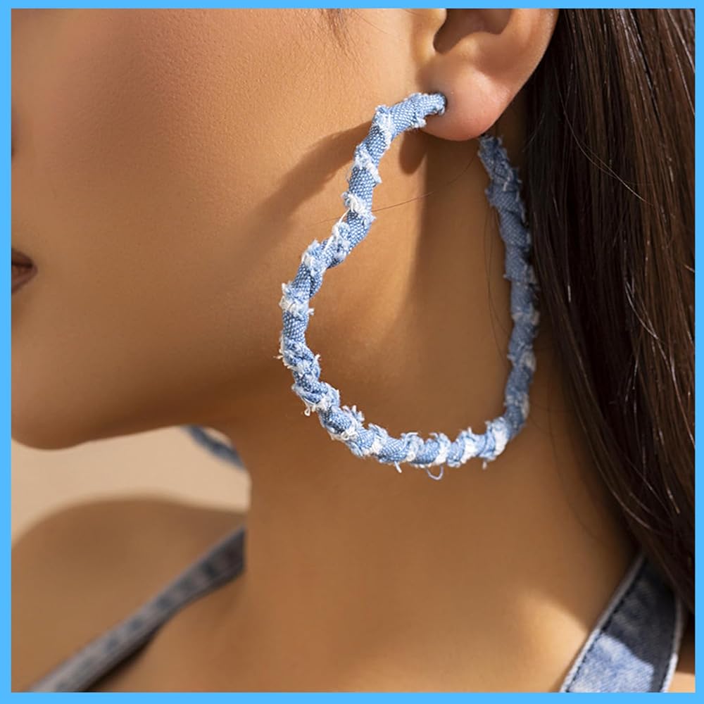 Bohemia Denim Hoop Earrings for Women Simple Exaggerated Big Heart Earrings for Women Boho Cool Jeans Cloth Heart Hoop Earrings for Women