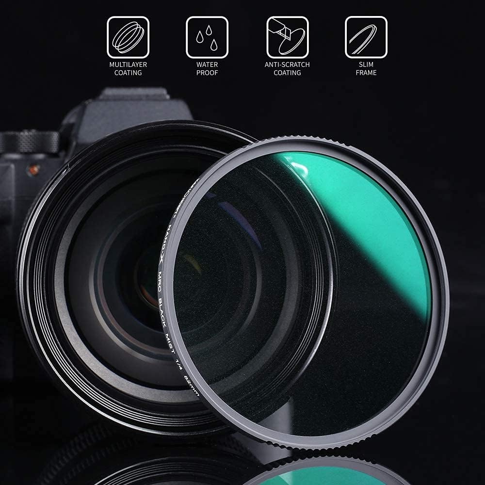 [فلتر احترافي للتصوير الفوتوغرافي] يمكن لهذا الفلتر الأسود الناعم 1/4 أن يخفف التجاعيد والنمش والمسام في بشرة الوجه، مما يجعلها أكثر حساسية وممتلئة ورائعة. يمكن تحقيق تأثير الفيلم الضبابي بشكل أفضل، مما يظهر تأثير الفيلم الحالم. من أجل ضمان جودة صورة فائقة الوضوح، تم اعتماد عملية التلميع المزدوجة لضمان الوضوح العالي ضمن الطول البؤري 550 مم. نوصي باستخدامها في تصوير الفيديو.