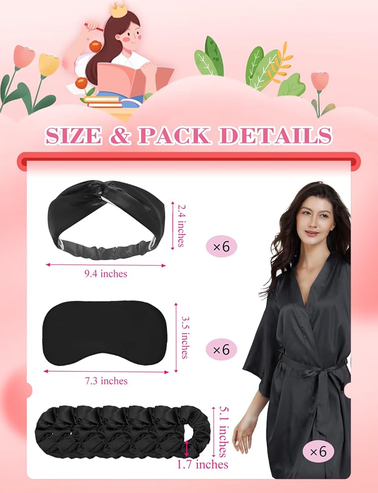 الكمية الكافية: سوف تحصل على 24 قطعة، بما في ذلك: 6 قطع من قمصان النوم، 6 قناع نوم، 6 ربطات شعر، 6 حلقات شعر، (ستكون الملحقات متوافقة مع لون ثوب النوم)