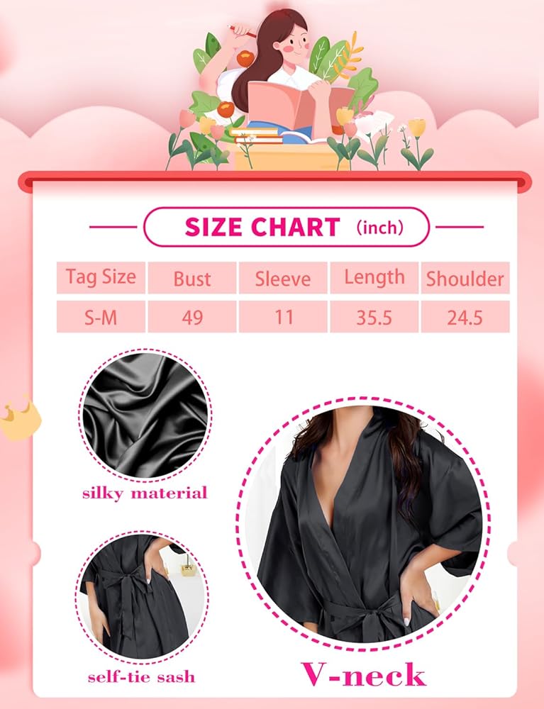 نسيج فائق النعومة: مصنوع من البوليستر الفاخر بنسبة 100%، هذه الأرواب الحريرية للنساء تتمتع بنسيج خفيف الوزن، ناعم جدًا وسلس. يعتبر الملمس المخملي صديقًا مثاليًا لبشرتك وهو مناسب بشكل خاص للصيف الحار لأن الرداء يبدو رائعًا.