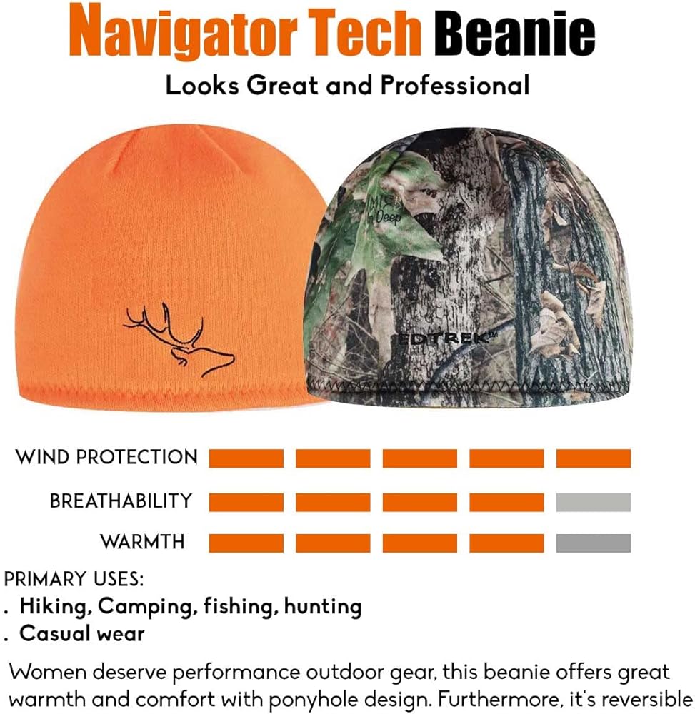 قبعة بيني نافيجاتور من EDTREK هي أكثر قبعة تنوعًا للمرأة الرياضية. توفر دفئًا وراحة رائعتين مع فتحة ذيل الحصان. مظهر احترافي مع التمويه العميق أو التمويه وايلد فاير من أجل السلامة في موسم الصيد، مظهر أنيق مع التمويه فيوجن أكوا وفيوجن بلو كلاً من الداخل والخارج.