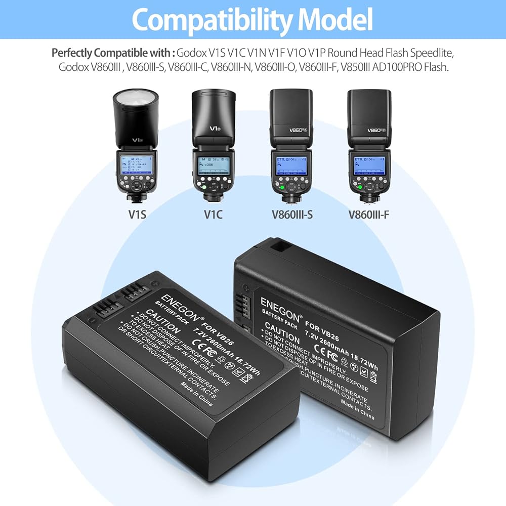 توافق مثالي: بطاريات فك تشفير كاملة، تعمل بشكل مثالي مع Godox V860III V860III-S، V860III-C، V860III-N، V860III-O، V860III-F، V850III AD100PRO Flash.