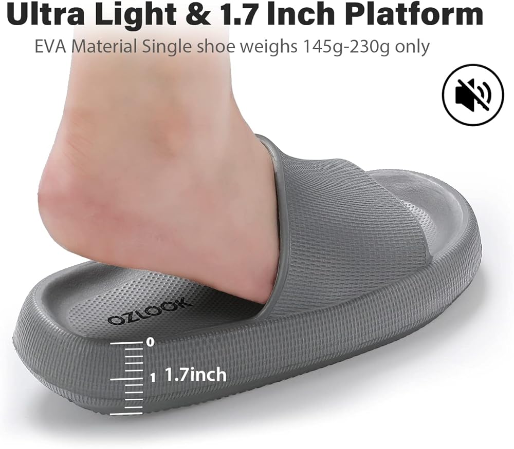 【تصميم مريح】هذه الشرائح السحابية للنساء والرجال مصنوعة من مادة أسيتات إيثيلين-فاينيل (EVA) الصديقة للبشرة والمتينة وعالية الجودة، وهي مصممة هندسيًا لتناسب قدميك ومصنوعة من مادة ناعمة وجيدة التهوية للحفاظ على برودة قدميك بشكل مريح، كما لو كنت تخطو على الغيوم. فهي خفيفة الوزن ومرنة للغاية، لذلك يمكن طيها ولفها دون أن تتشوه.