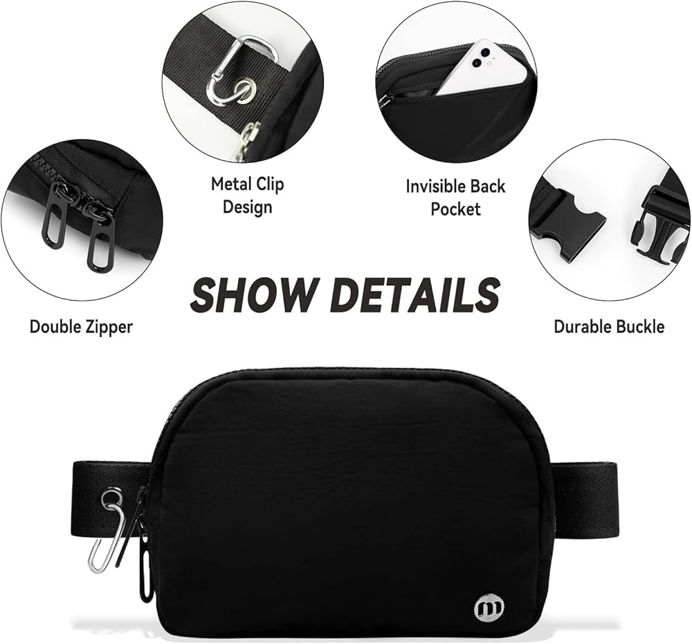 ✅4 Upgrades Design: This everywhere belt bag is designed to deliver comfort and convenience.1: Double Zippers are easy to use. 2: Velcro inner pockets will keep your cards and Cash safe; 3: Clip on the belt will ease sunglasses, Keys; 4: Extra key chain inside will help you to open the door quickly.