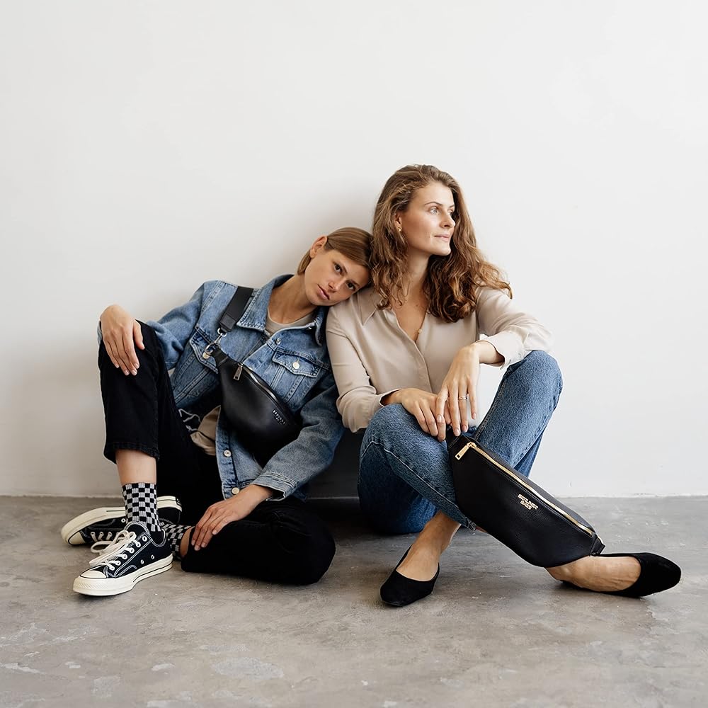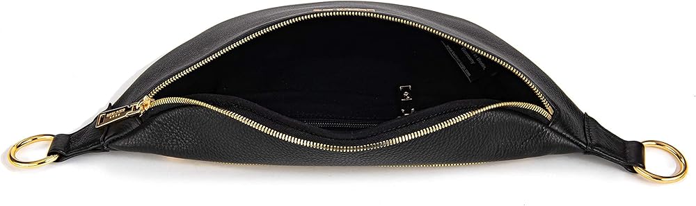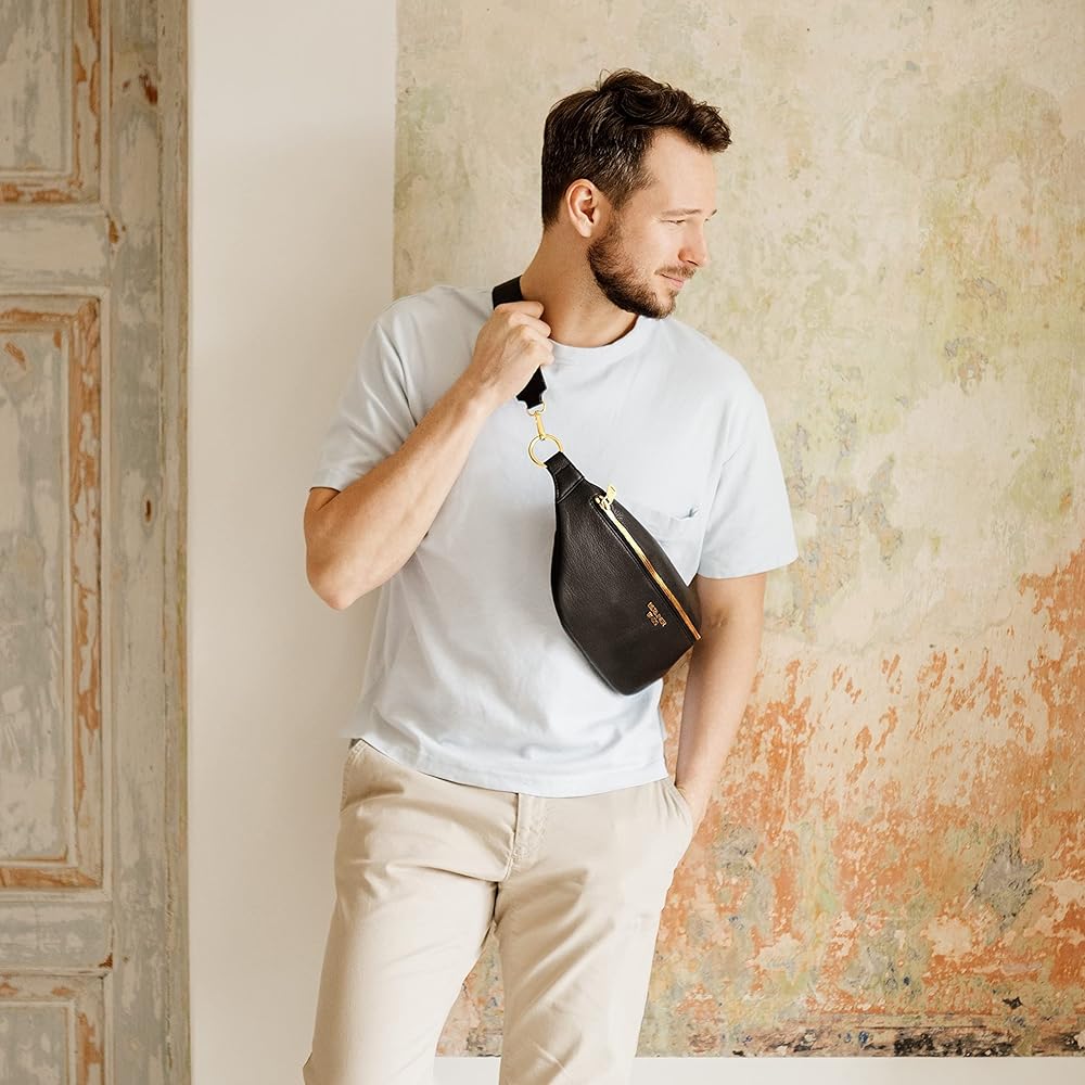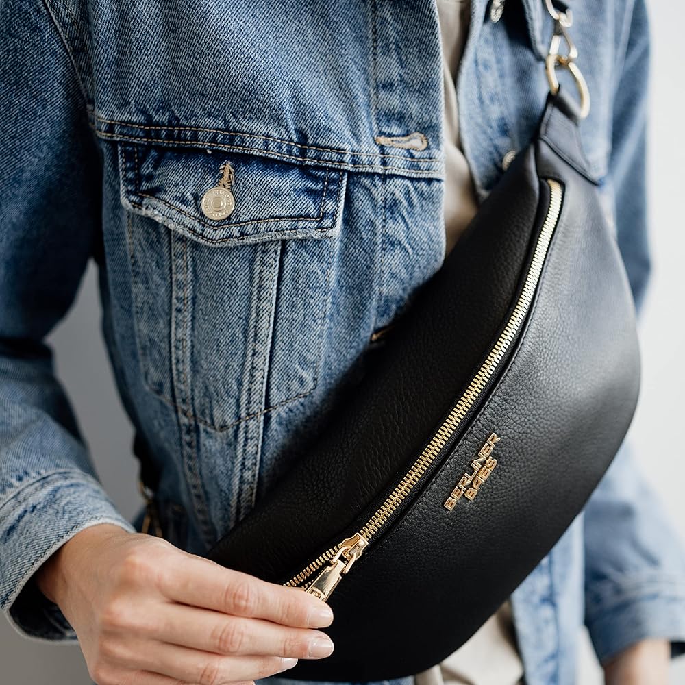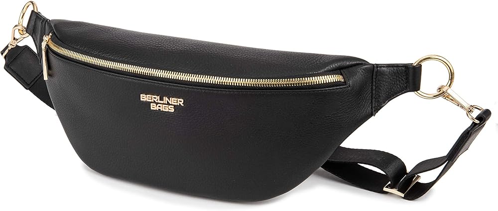 💎MADE TO LAST. The stylish Mona fanny pack measures 16.5" x 3.5" x 5.5" (L x W x H) and is made of premium full grain leather and lined with 100% cotton. The front of the bag is embellished with the Berliner Bags metal logo. It features premium polished metal zippers with branded pullers and an adjustable strap that attaches with sturdy metal clips