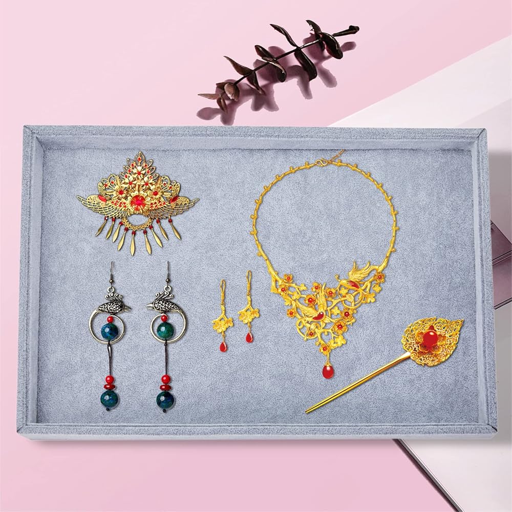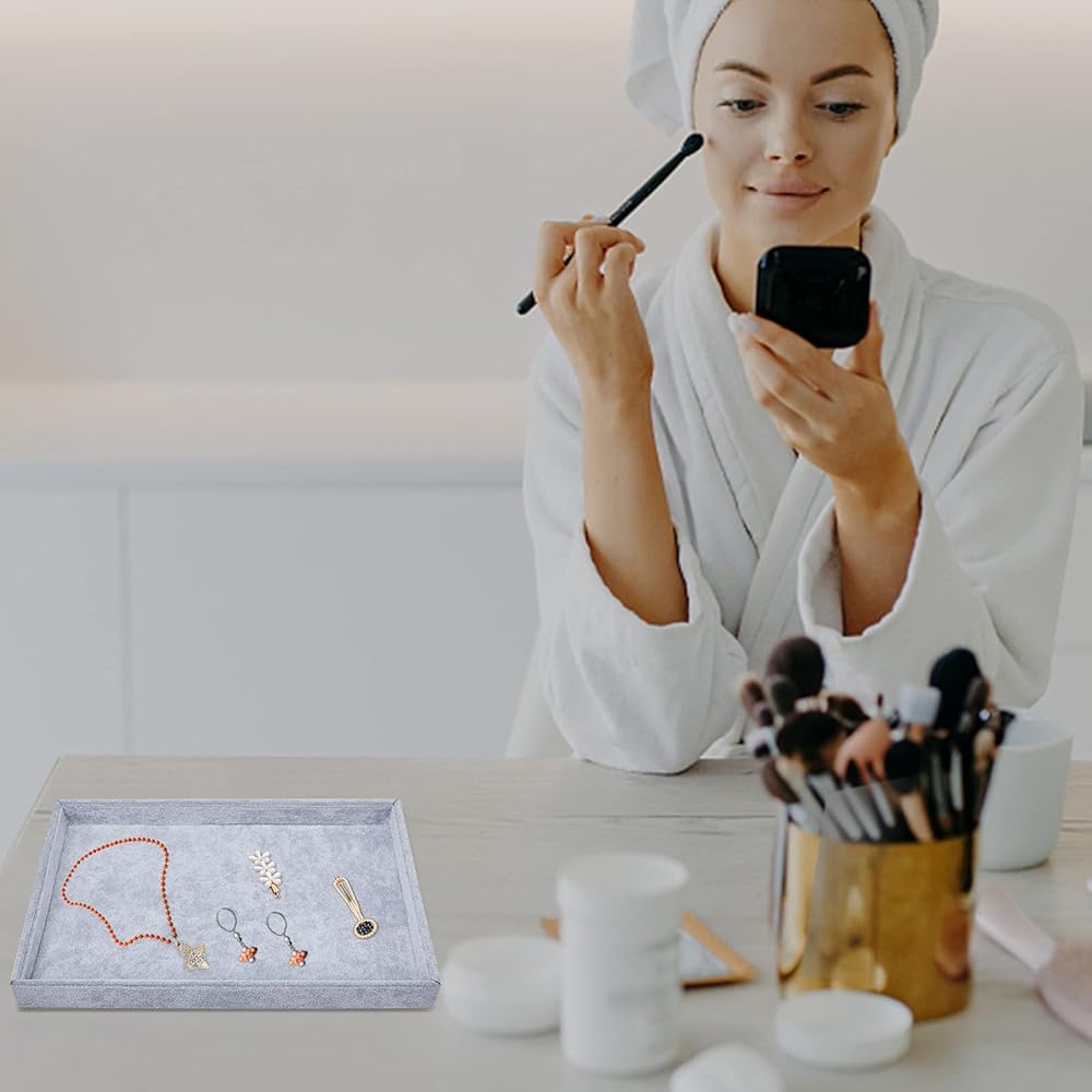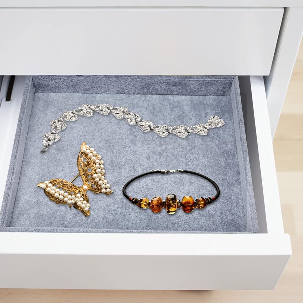 صناعة ممتازة: هيكل متين ومثالي للحفاظ على مجوهراتك أنيقة ومنظمة، مجموعة صينية المجوهرات قابلة للتكديس وتوفر مساحة أكبر على خزانة ملابسك أو طاولة الزينة أو سطح الطاولة.