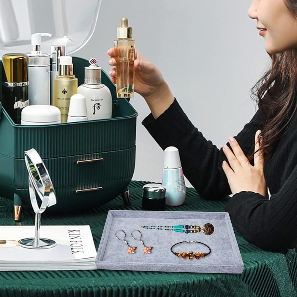 مادة عالية الجودة: صينية المجوهرات المخملية القابلة للتكديس الخاصة بنا مصنوعة من مخمل عالي الجودة، ملمس رائع وتبدو أنيقة. تحمي مجوهراتك من أي نوع من التلف.