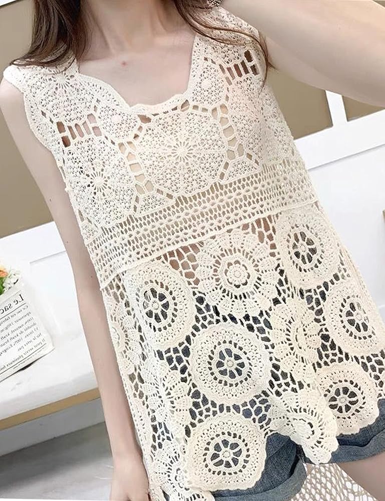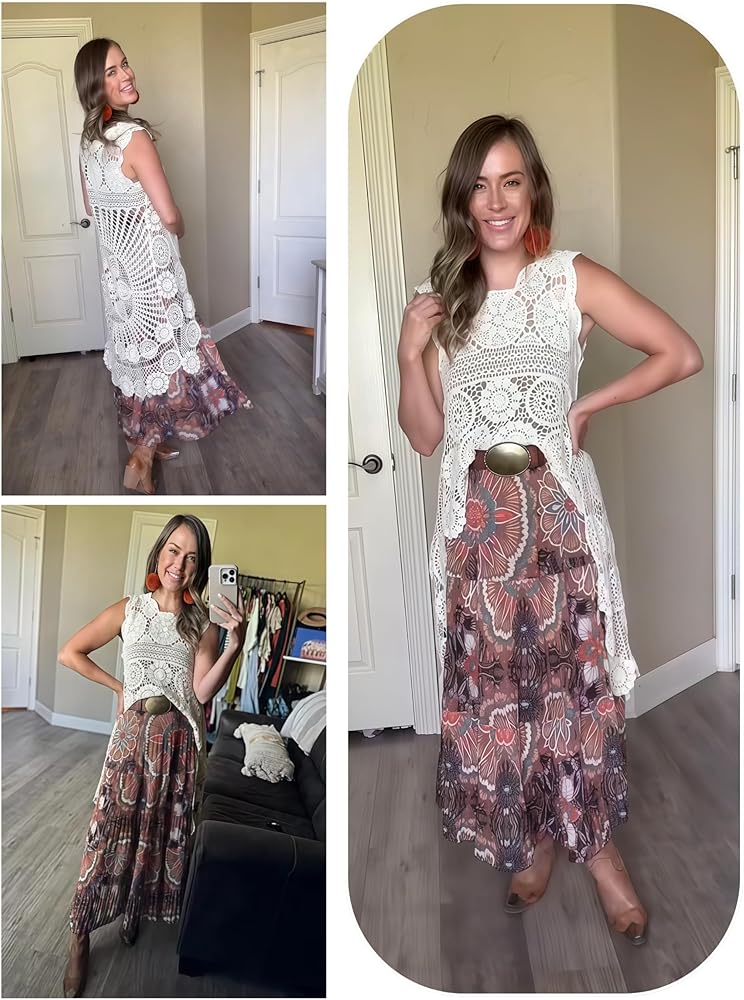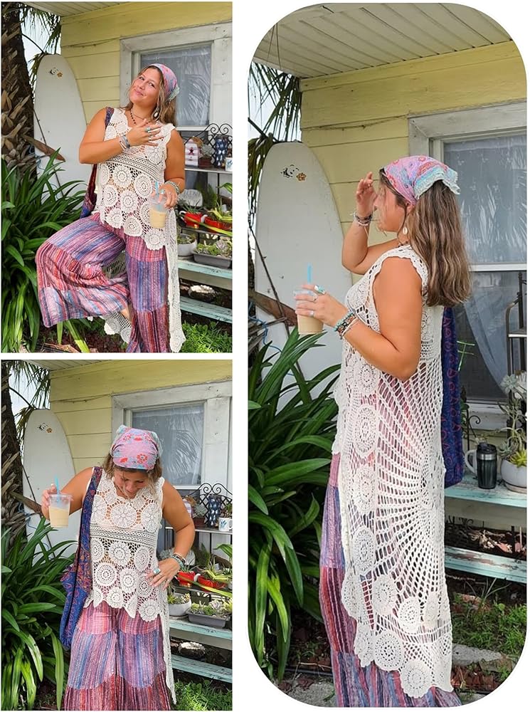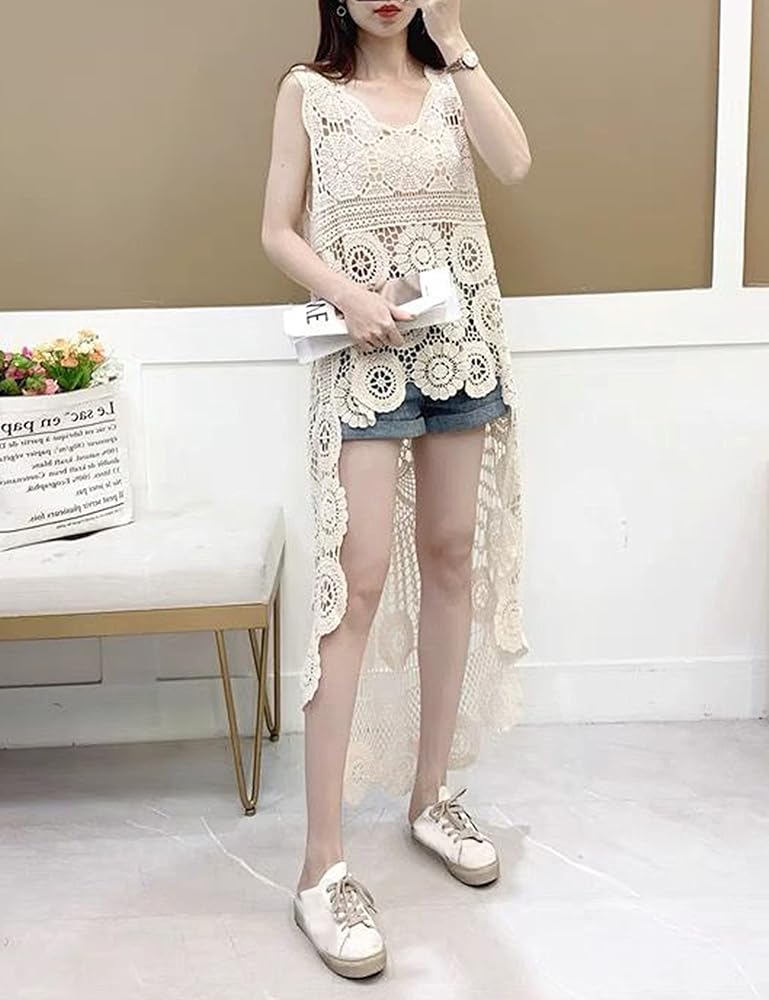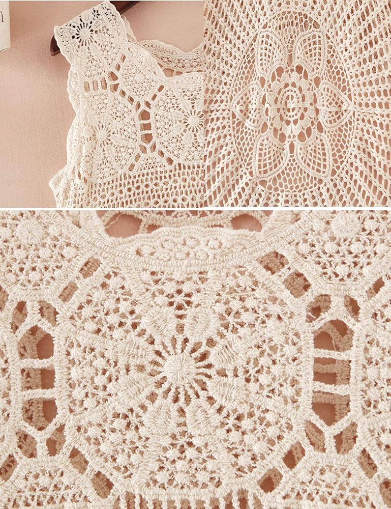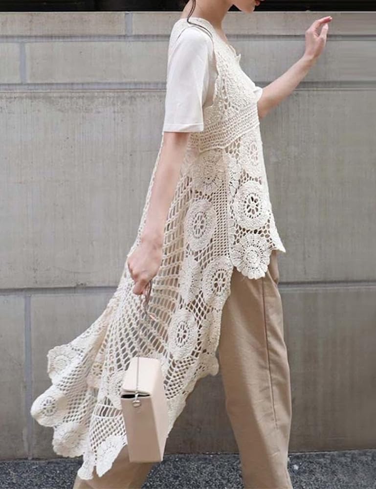 - فستان شاطئ أنيق من الدانتيل الكروشيه مزين بالزهور ميدي سموك