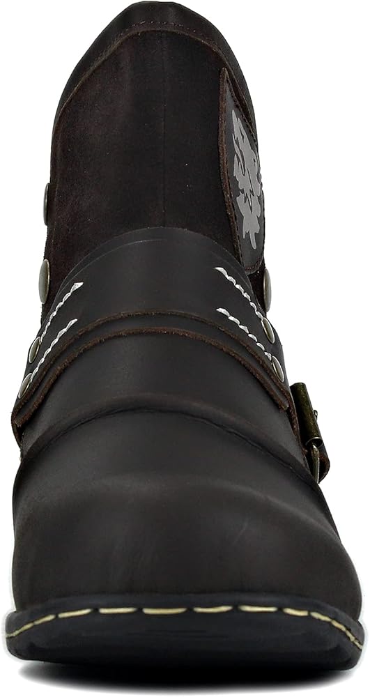 أحذية OSSTONE Moto للرجال أحذية شوكا الجلدية الأنيقة بسحاب علوي أحذية كاجوال OS-5008-7-B