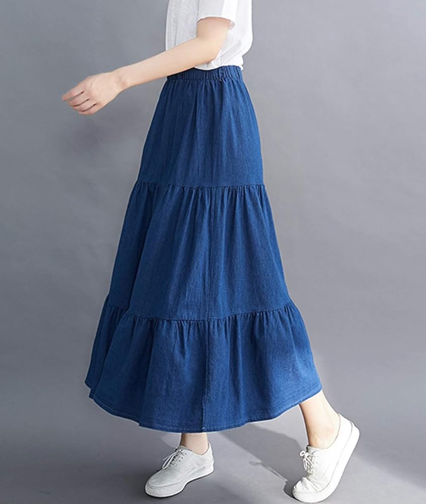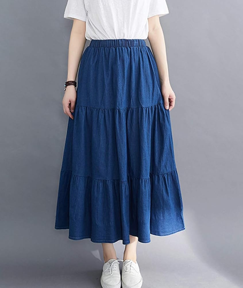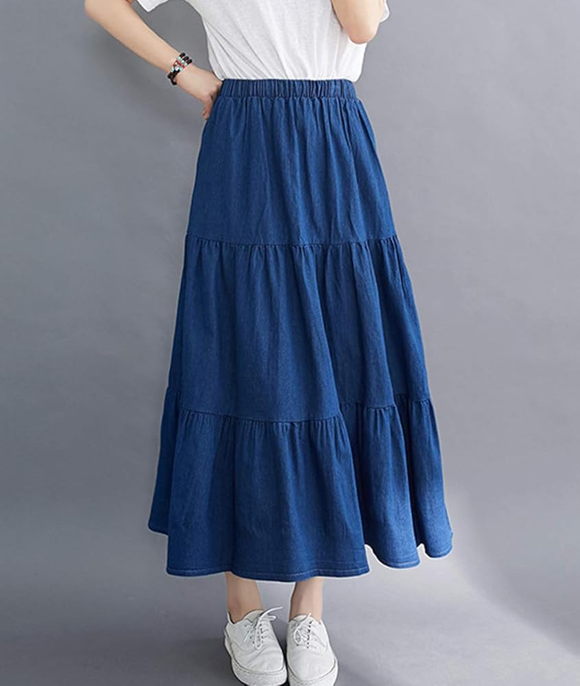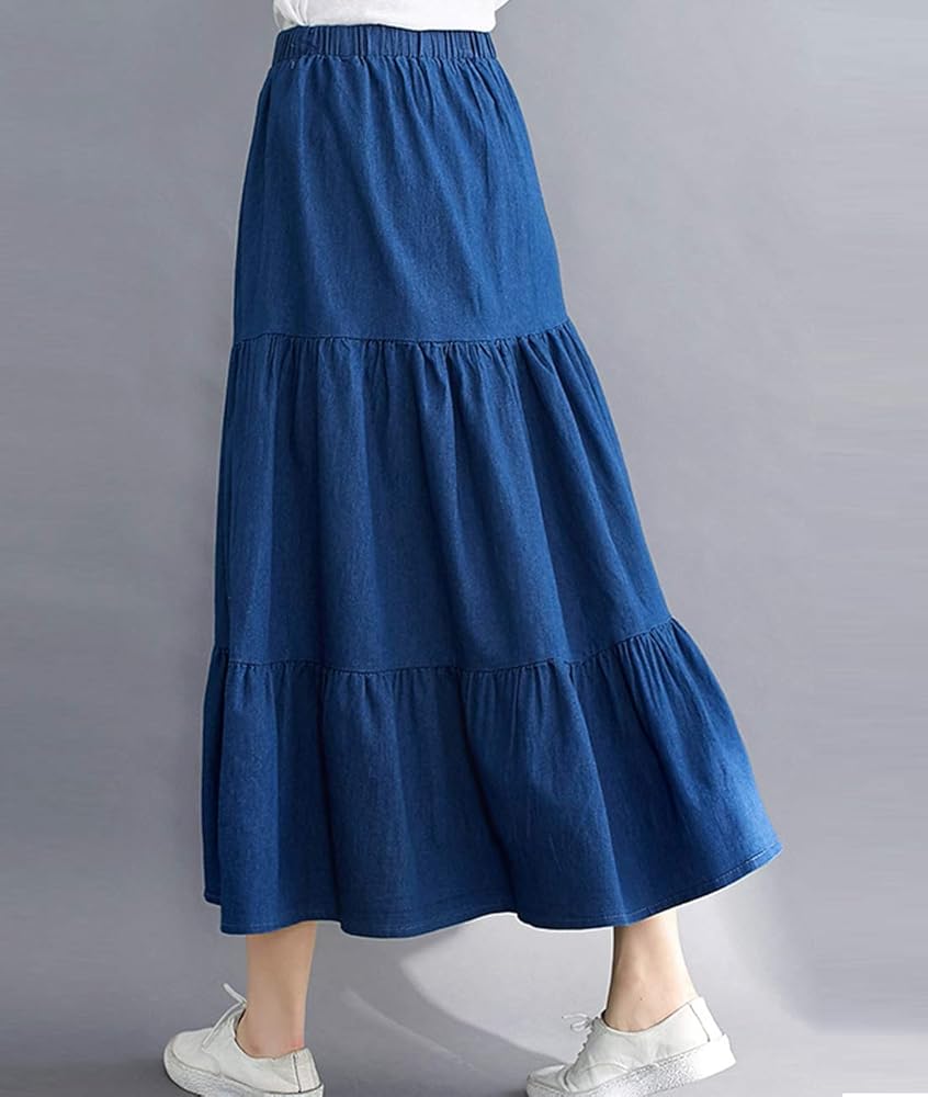 تنورة نسائية طويلة من قماش الدنيم بخصر مطاطي من Femiserah