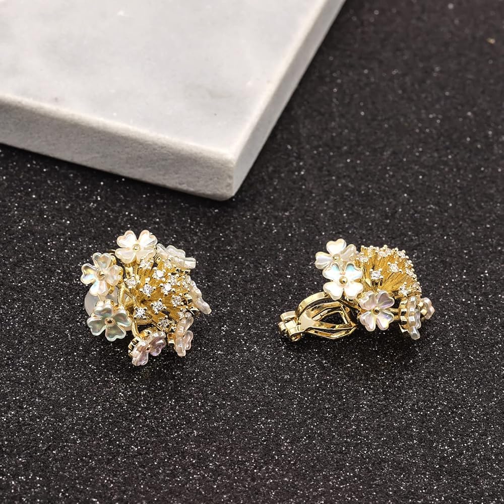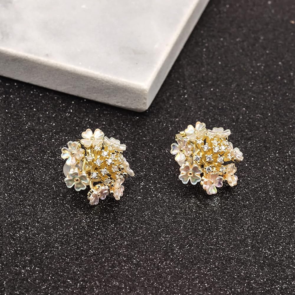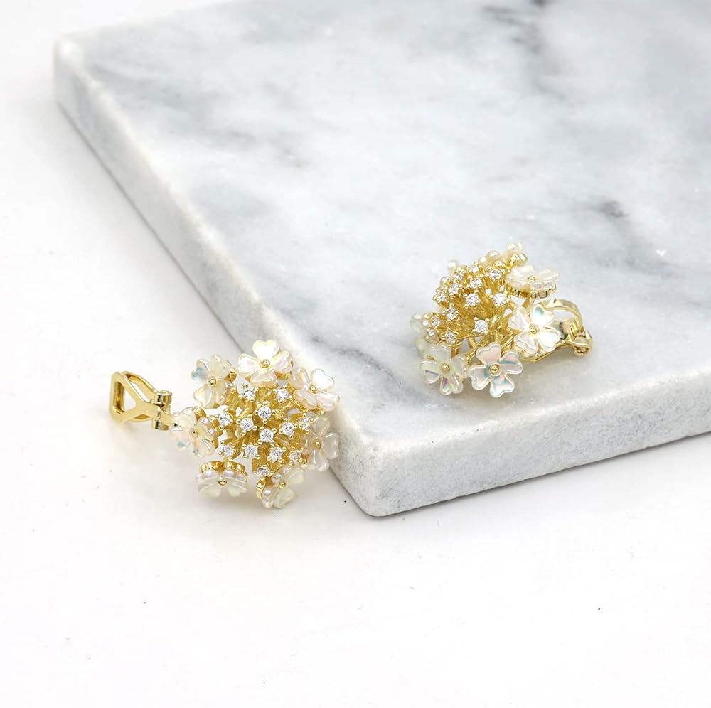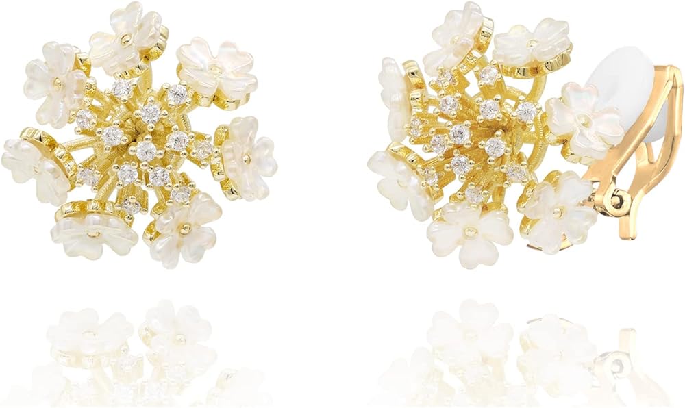 هذه الأقراط الرقيقة مرصعة بجودة عالية AAA+ زركونيا مكعب (CZ). مادة الهيكل على شكل زهور حول الأقراط