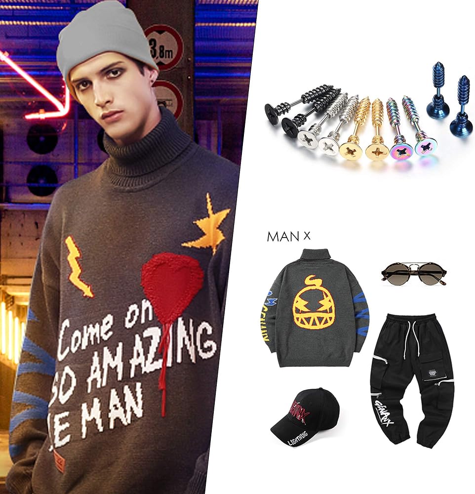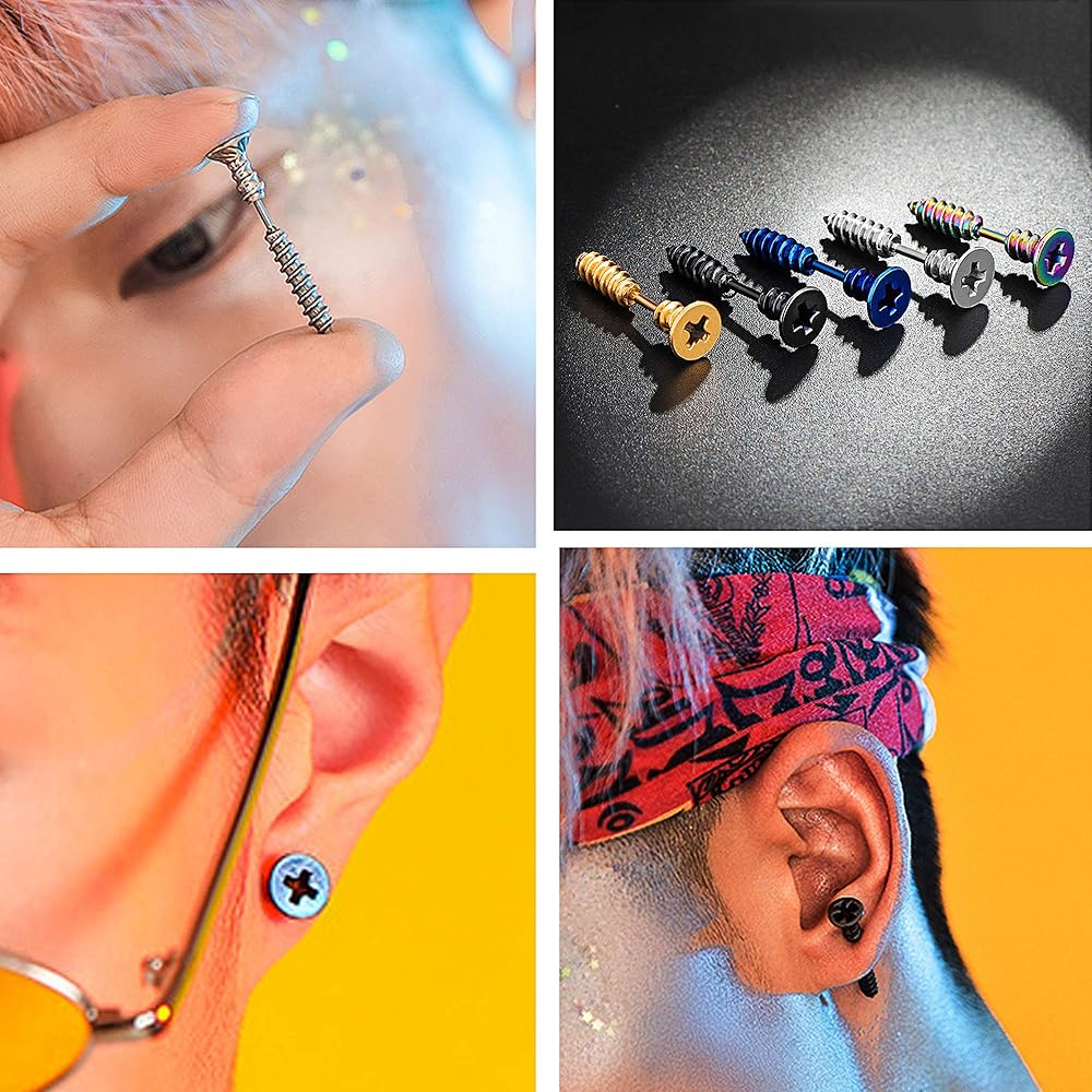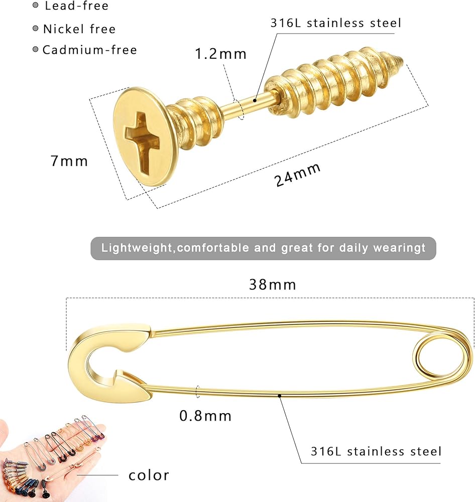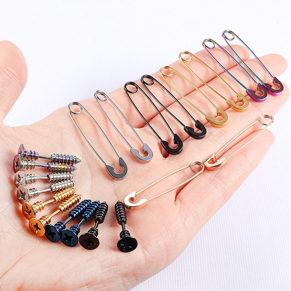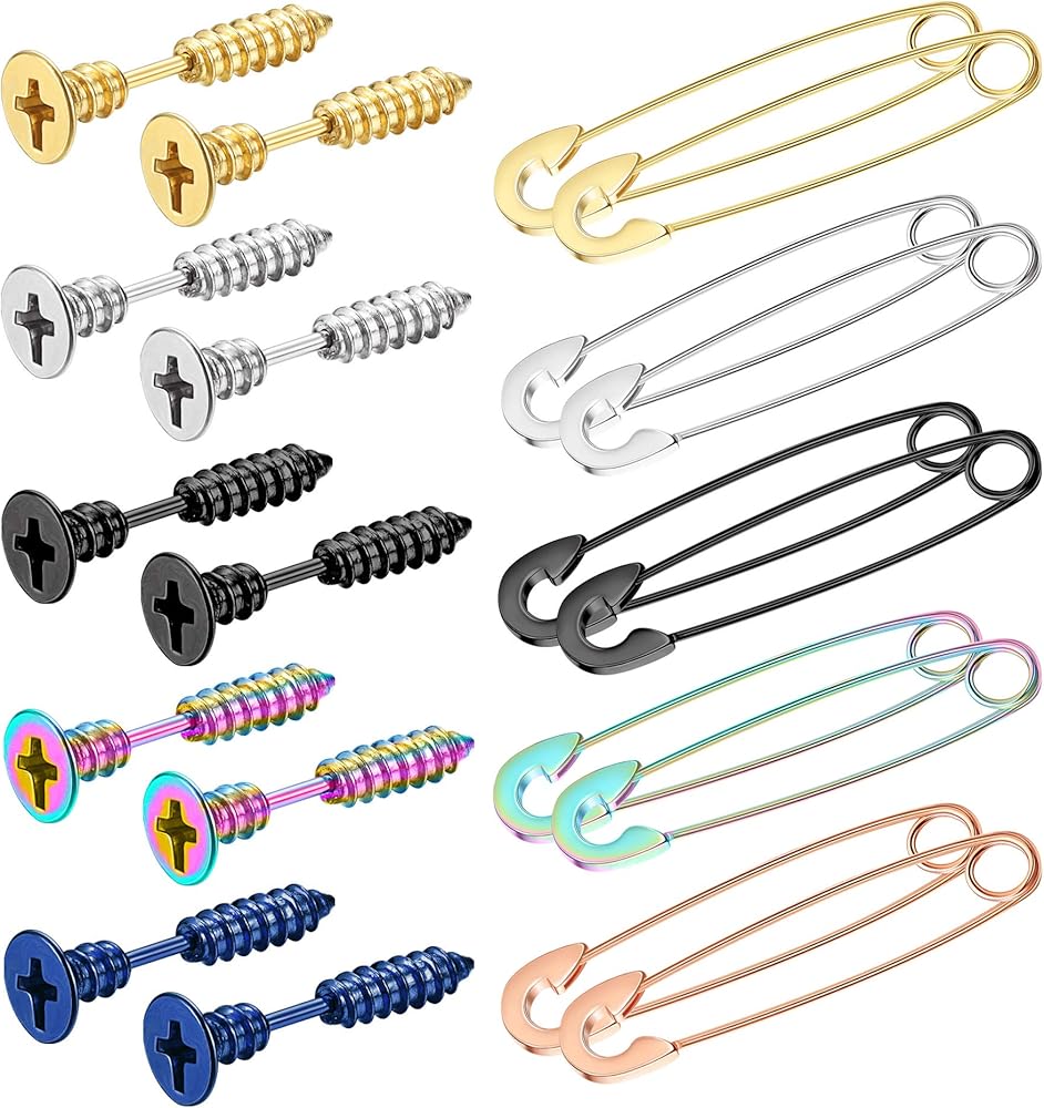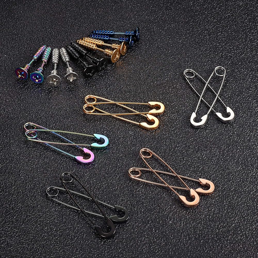 🔸مجموعة أقراط بانك 🔸 5 أزواج من الأقراط اللولبية و5 أزواج من أقراط دبابيس الأمان في مجموعة، ألوان مختلفة، أقراط أنيقة ومجوهرات أساسية للرجال والنساء من بانك روك. خفيفة الوزن ومريحة ورائعة للارتداء اليومي، لا تسبب تهيج الجلد.