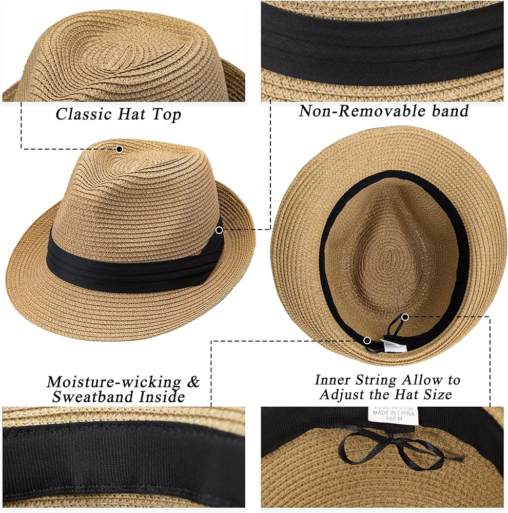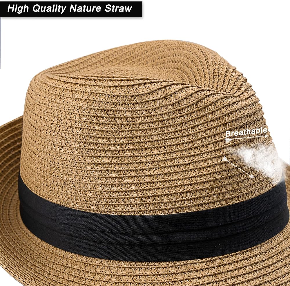 Children's Straw Trilby Hat: Made of high quality paper straw, lightweight, breathable, & comfortable,that's both soft to the touch and durable enough.