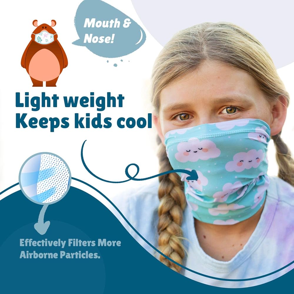 • Washable & Reusable: Besides the cute print designs, these high-quality kids face mask neck gaiters give your little one resilience and protection due to the stretchable lycra that is highly breathable. When the time comes, simply wash the cool face masks for kids and reuse them as many times as you want.