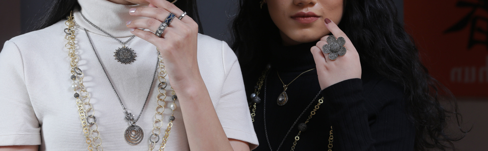 • مجوهرات المصمم: هذه القلادات الجميلة من تصميم الألماس هي تصميمنا الجريء للنساء المتحملات الحرة. كل قطعة في مجموعتنا مصنوعة يدويًا مع نهج فني ممزوج مع الموضة العصرية والطراز البوهيمي. معظم مجوهراتنا تأتي مع معدن مزخرف.