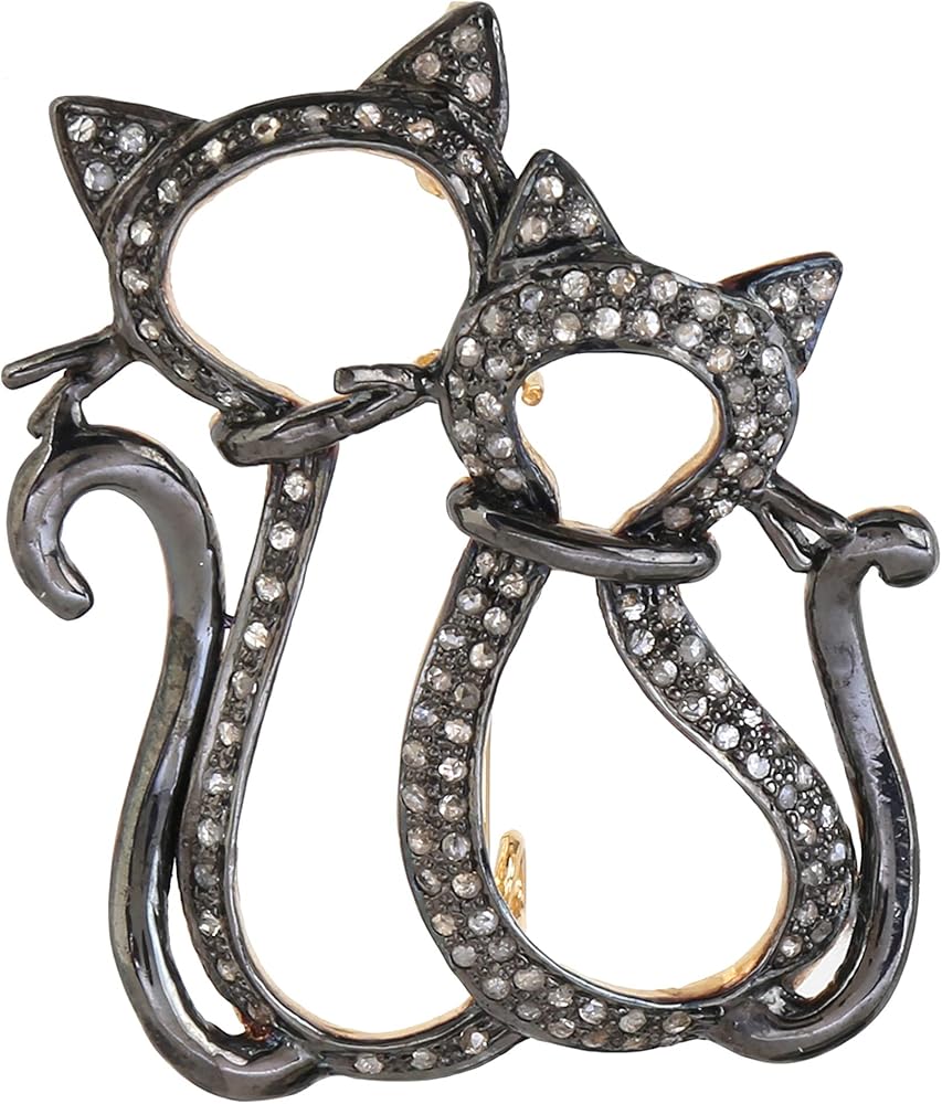 دبوس بروش أنيق مرصع بالألماس للنساء من الفضة الاسترلينية عيار 1.05 قيراط من الألماس الطبيعي البني عيار 925 للنساء