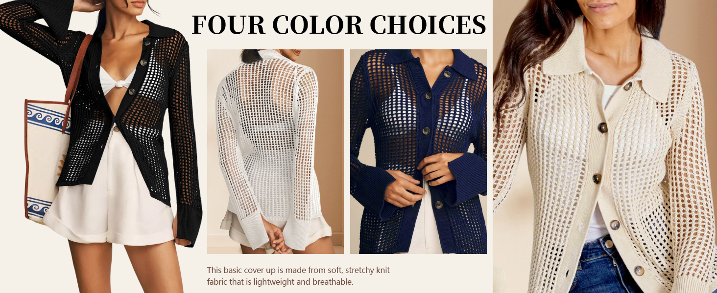 التصميم: تم تصميم الأغطية المجوفة بأزرار، عصرية وأنيقة، مما يظهر سحر أنثوي ساحر. يوفر التصميم ذو الأكمام الطويلة حماية إضافية من الشمس مع الحفاظ على ملمس خفيف الوزن.