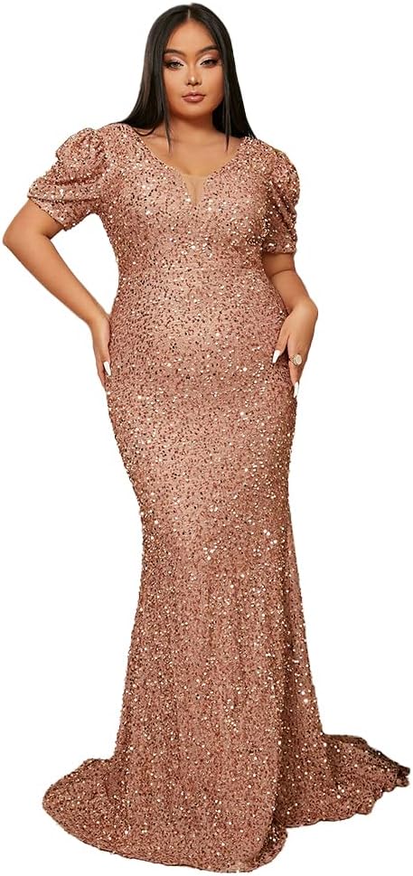 • السمات: يتميز هذا الفستان الرسمي بالترتر بأكمام قصيرة منتفخة، ورقبة مزدوجة على شكل حرف V، وفيونكة خلفية، وحورية البحر، وطول يصل إلى الأرض، وخصر مرتفع، وشبكة متباينة، يظهر سحرك وناضجك.
