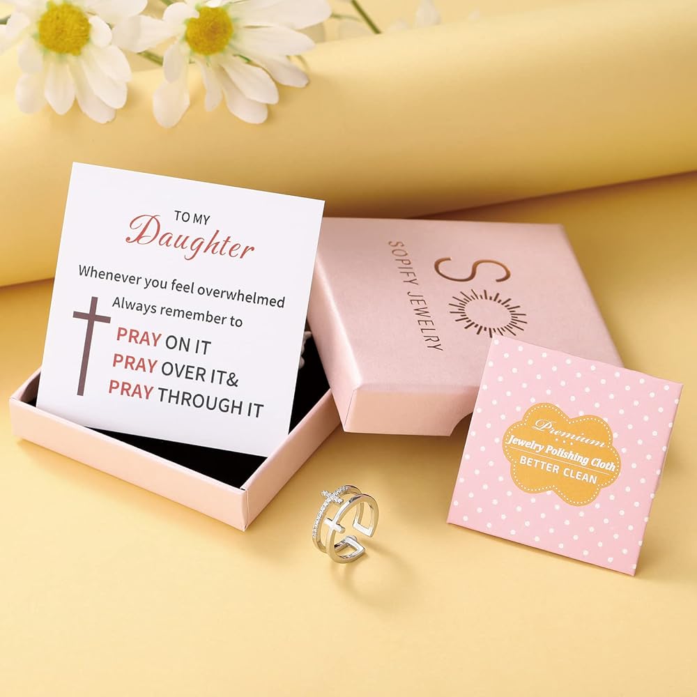 💗【The Perfect Gift】 -- If you are looking for a unique gift idea to surprise your daughter, then this PRAY through it cross ring is the way to go, on birthdays, Christmas, or whenever she's feeling down.This will be a meaningful gift that your forever loved ones will cherish.