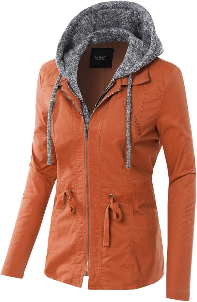 - زر كبس كامل وسحاب للإغلاق / خصر برباط قابل للتعديل / سترة بقلنسوة قابلة للتعديل برباط / فتحات جانبية صغيرة