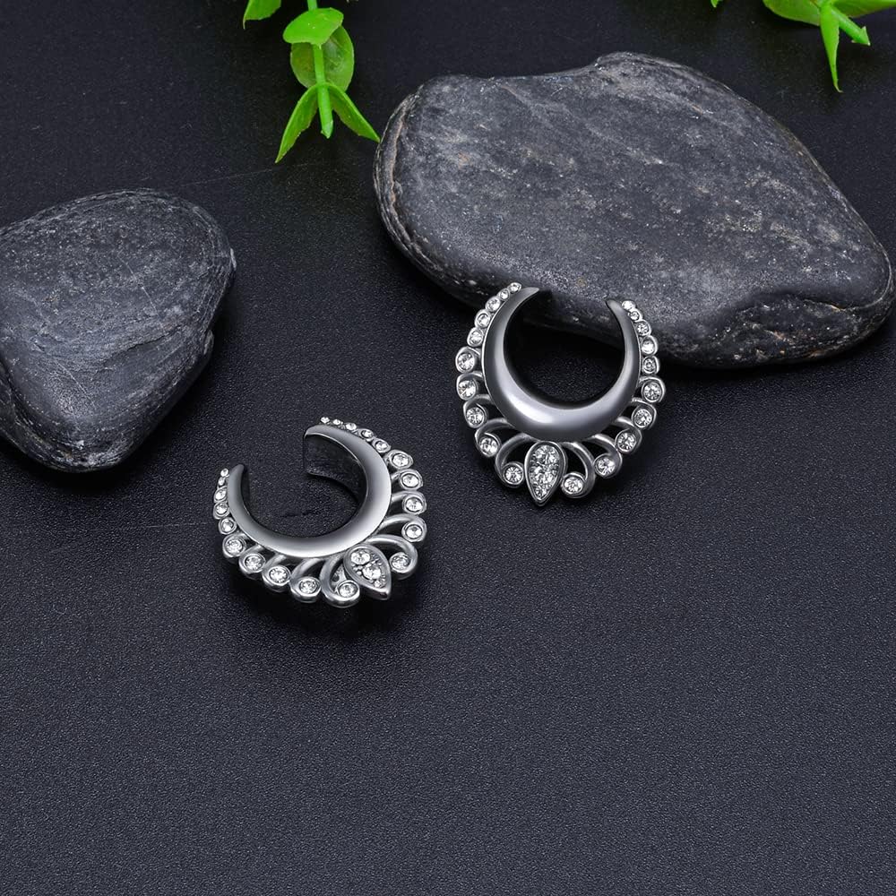 The design is made from stainless steel,notched flared ear tunnels.