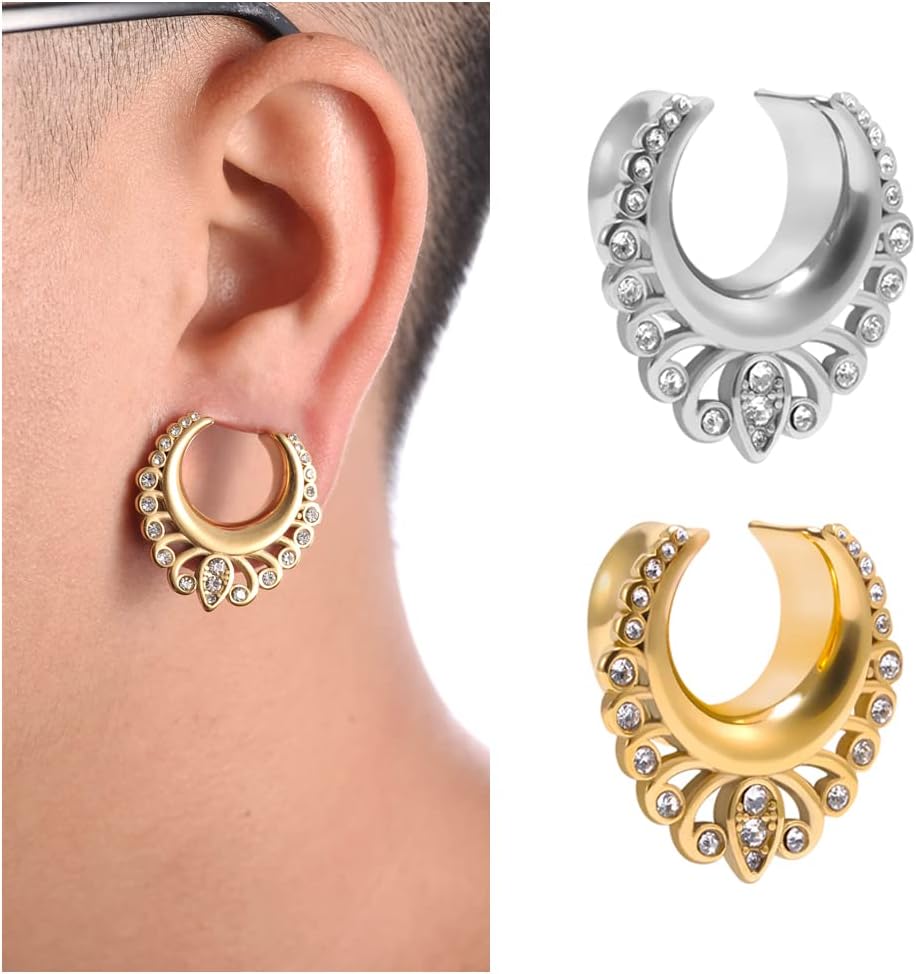 Material:Stainless Steel.The tunnels for ears use high quality material Science, diamond bright colors do not fadedurable, safe materials, is a healthy choice.