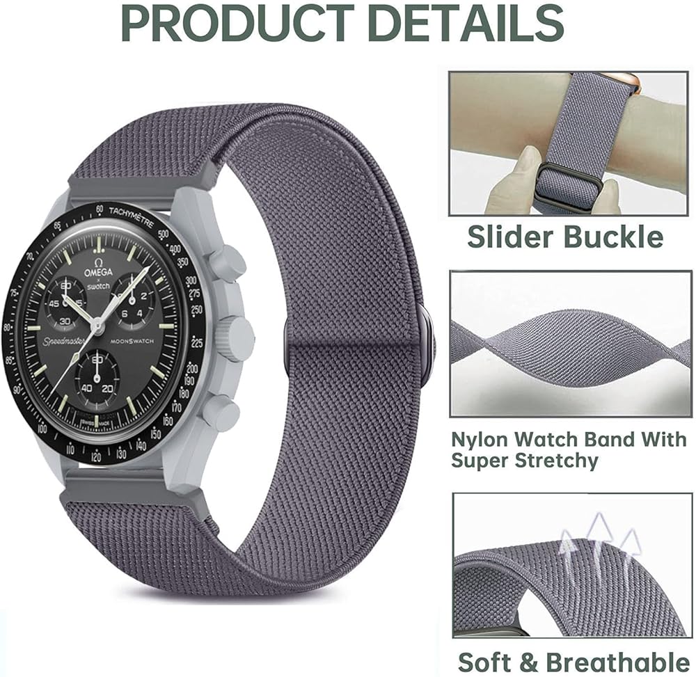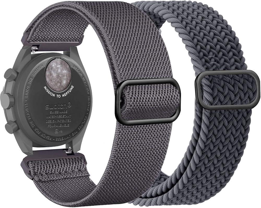 【نايلون مجدول قابل للتمدد】سوار Omega x Swatch الآخر مصنوع من خيوط البوليستر المضفرة حول خيط السيليكون، ويتميز كل شريط حلقي منفرد مضفر بتصميم ناعم وقابل للتمدد. يوفر الحزام مرونة وصديقة للبشرة دون أي تهيج، ومسامي، ومقاوم للعرق، ومتين، وخفيف الوزن وقابل للغسل. مناسب للمعصم مقاس 4.7 بوصة - 8.7 بوصة (120 مم - 220 مم).