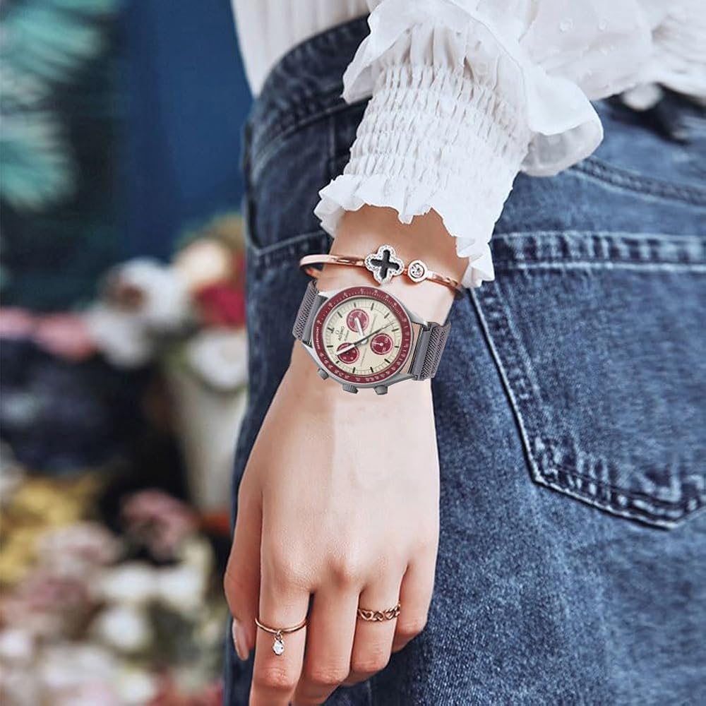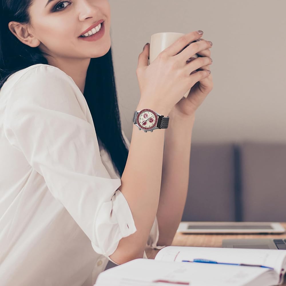 【قابل للتعديل وسهل التركيب】يحتوي الشريطان على إبزيم معدني قابل للتعديل يسمح لك بتعديل حجم سوار الساعة حسب رغبتك، ويأتي مع قضبان زنبركية سريعة التحرير على كلا الجانبين سهلة الإزالة والتركيب، والتي لم تعد تقلق حول السقوط من ساعتك