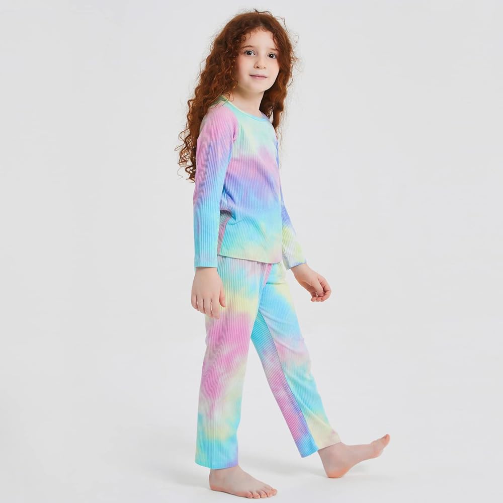 - السمات: بيجامات مضلعة للفتيات، بلوفر، رقبة دائرية وأكمام طويلة، نسيج قطني