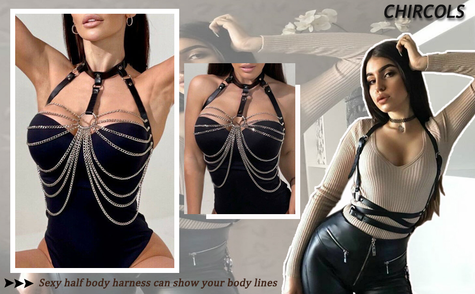• ➹مناسبة➹ حزام الجسم الجلدي مثالي لأزياء الهالوين التنكرية والحفلات التنكرية والكريسماس والحفلات، يجعلك تبدو أكثر براقة وإثارة ولامعة ومناسب أيضًا للرقص، ويجعلك أكثر حضورًا مبهرًا بين الناس.