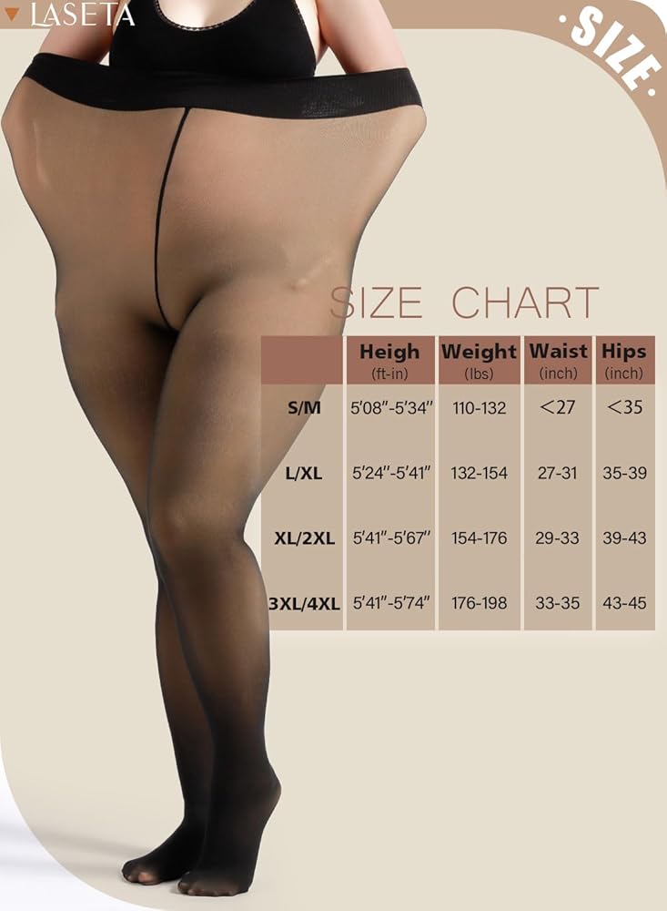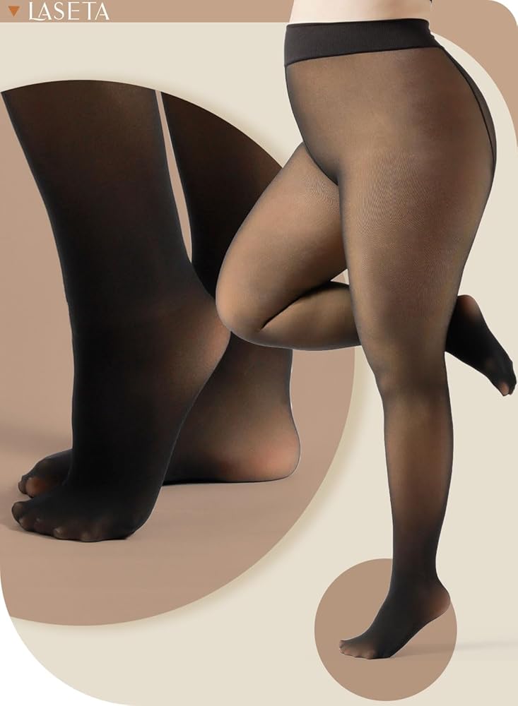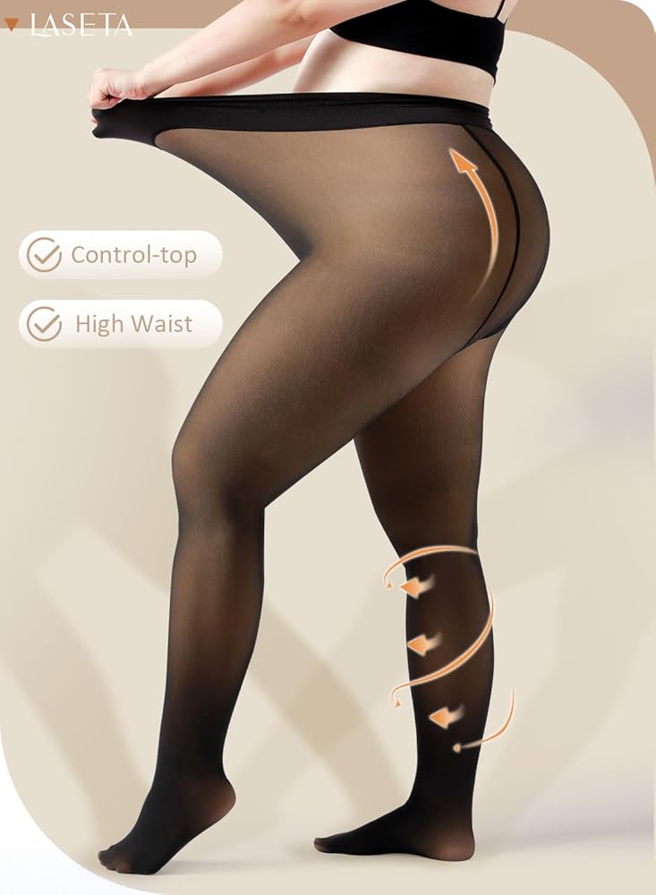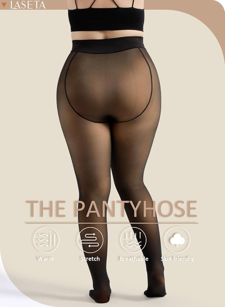 جوارب طويلة نسائية دافئة من LASETA مبطنة بالصوف، جوارب طويلة شفافة سوداء شفافة عالية الخصر للتحكم في الشتاء