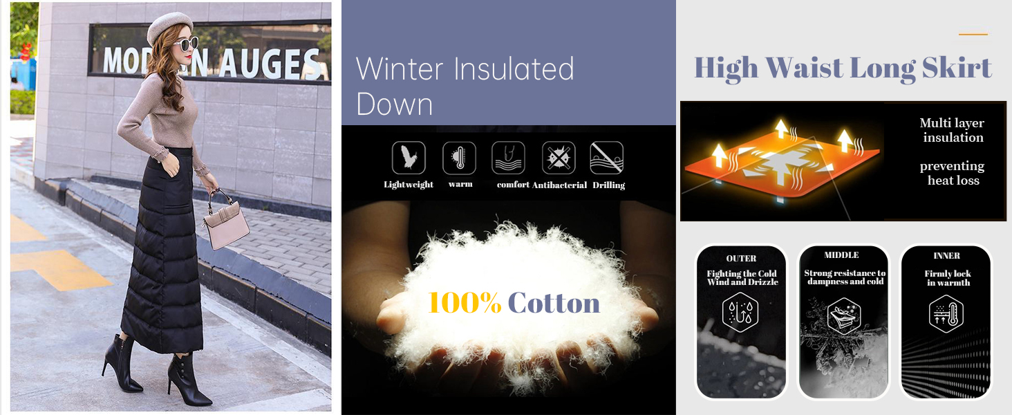 المواد: تنورة نسائية طويلة معزولة قطعة واحدة مصنوعة من نسيج القطن والبوليستر الناعم، خفيفة الوزن، دافئة، مقاومة للرياح، مريحة في الارتداء. تنورة سفلية قابلة للتعبئة، سهلة الارتداء والخلع، ويمكن استخدامها أيضًا كلحاف صغير