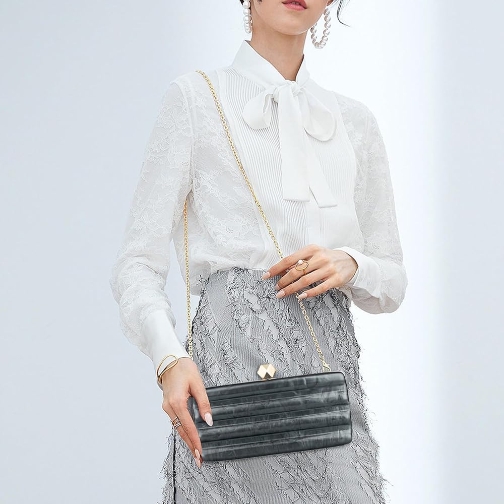 • 【خامة الحقيبة】حقائب يد كوميون للسيدات مصنوعة من مادة الأكريليك وسلسلة معدنية ومبطنة بالبوليستر. سطح أكريليك أملس مقاوم للماء والبقع. جميع أجزاء العمل مصنوعة بشكل جيد، على شكل صندوق رخامي، ونبيلة، وأنيقة، ولطيفة وفريدة من نوعها.