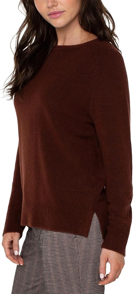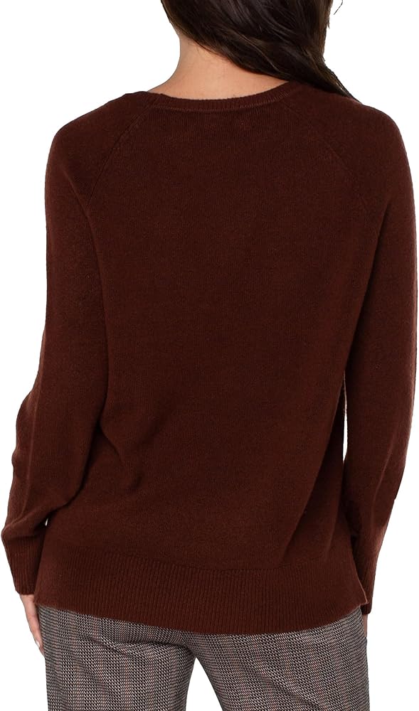 Add the Liverpool(tm) Long Sleeve Raglan Sweater w/ Side Slit to your wardrobe and enjoy its comfort, style, and endless pairing possibilities. A timeles essential peice, this sweater is designed in premium 7GG brushed sweater yarn, ensuring a soft and comfortable feel against the skin. Its raglan sleeves add a touch of sporty elegance to the design, while the side slits create a modern and trendy look. ,Crew neckline. Rib-knit pattern on the neckline, cuffs, and hemline.