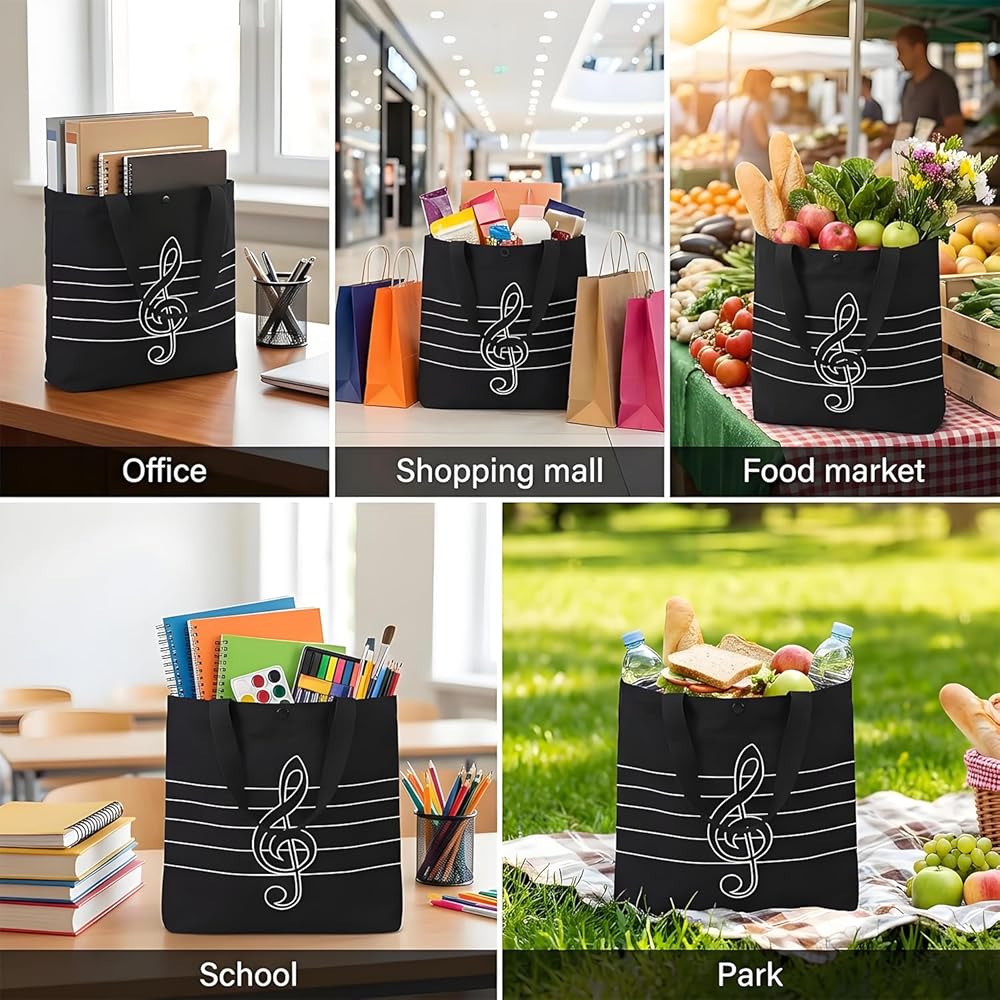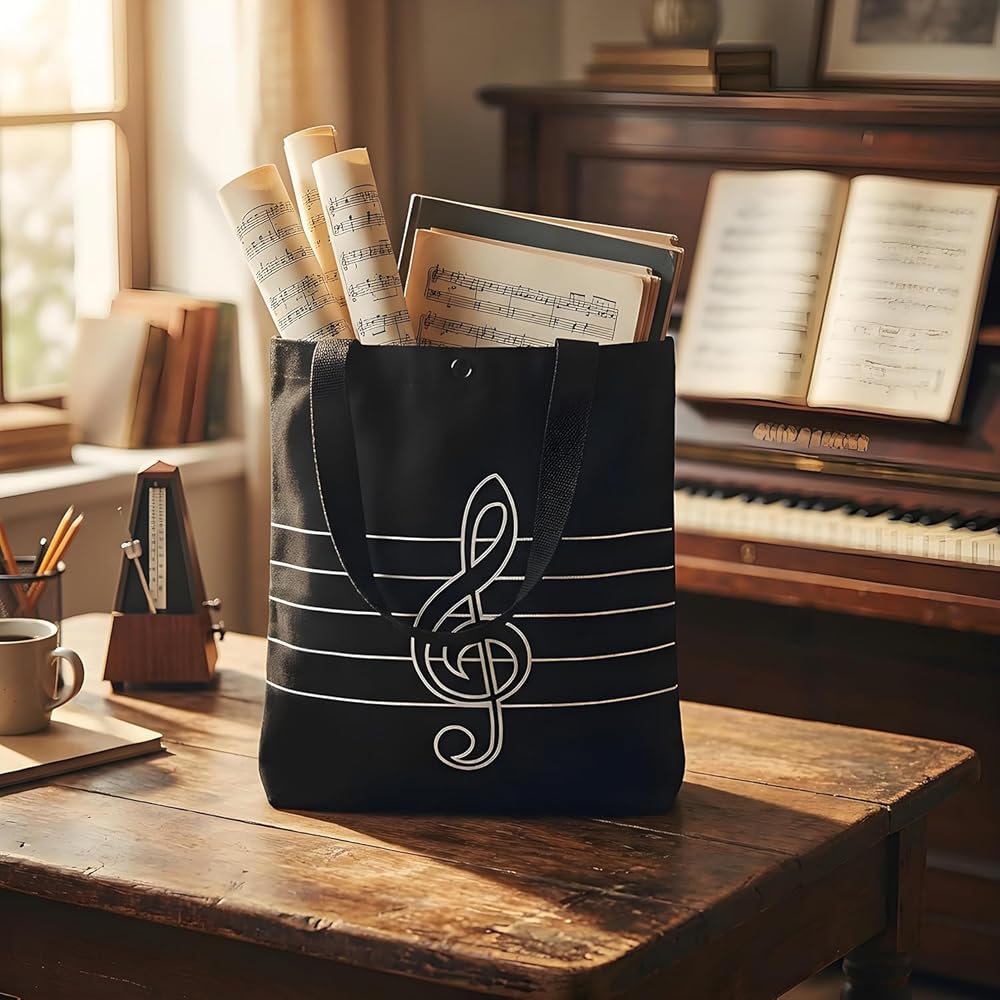 100% natural Environmentally tote bag,Fashion & Music Theme Patterns,Music notes composition design Great gift for the Music Lovers