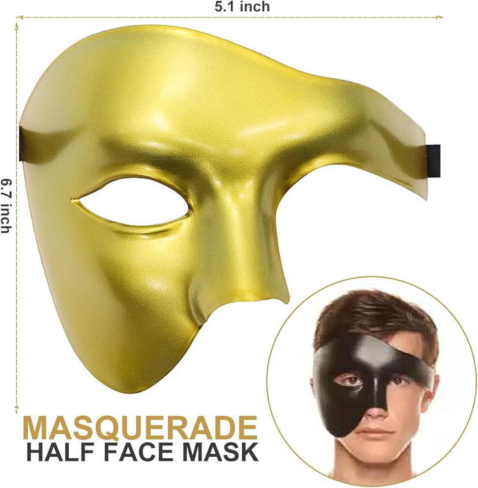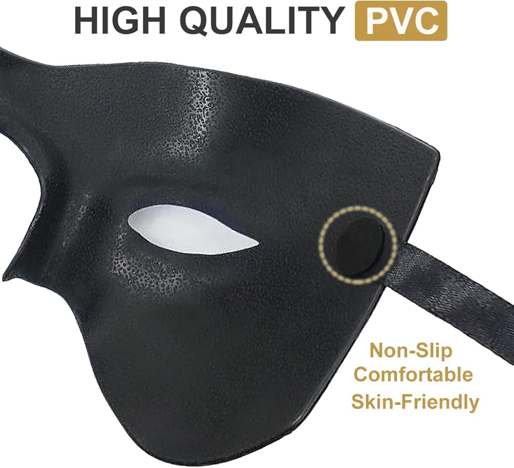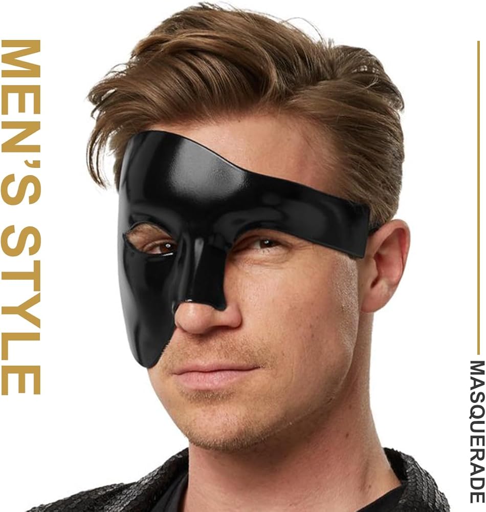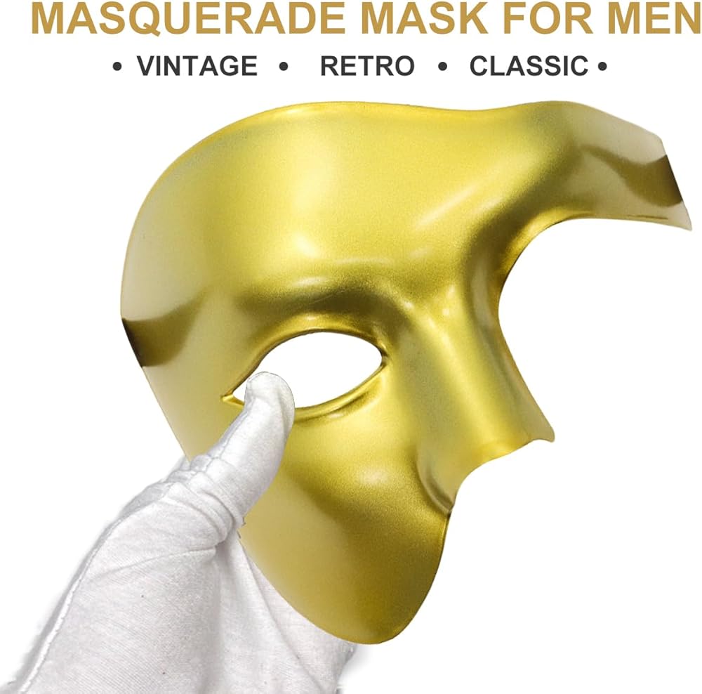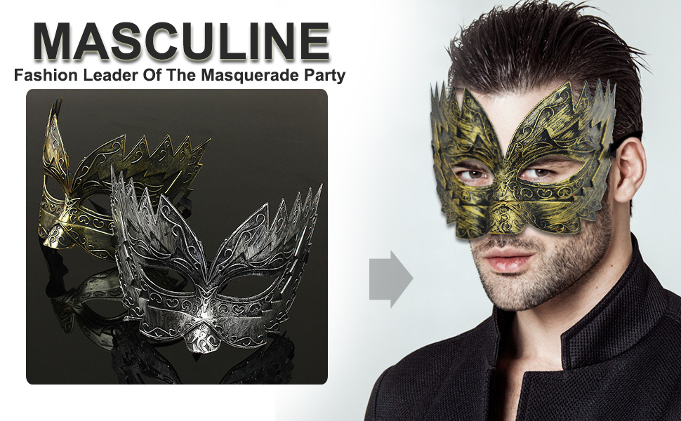 • طراز MASCULINE'S STYLE: ارتداء قناعنا التنكرية ذو التصميم العتيق والرجعي، كن رائد الموضة في الحفلات ذات الطابع الخاص. التصميم المعقد والدقيق جنبًا إلى جنب مع مواد عالية الجودة يجعلك النبيل الملكي الحقيقي. تميز بصناعتنا الرائعة، وستحظى بالتأكيد بالكثير من الاهتمام. أنت ملك الليل.