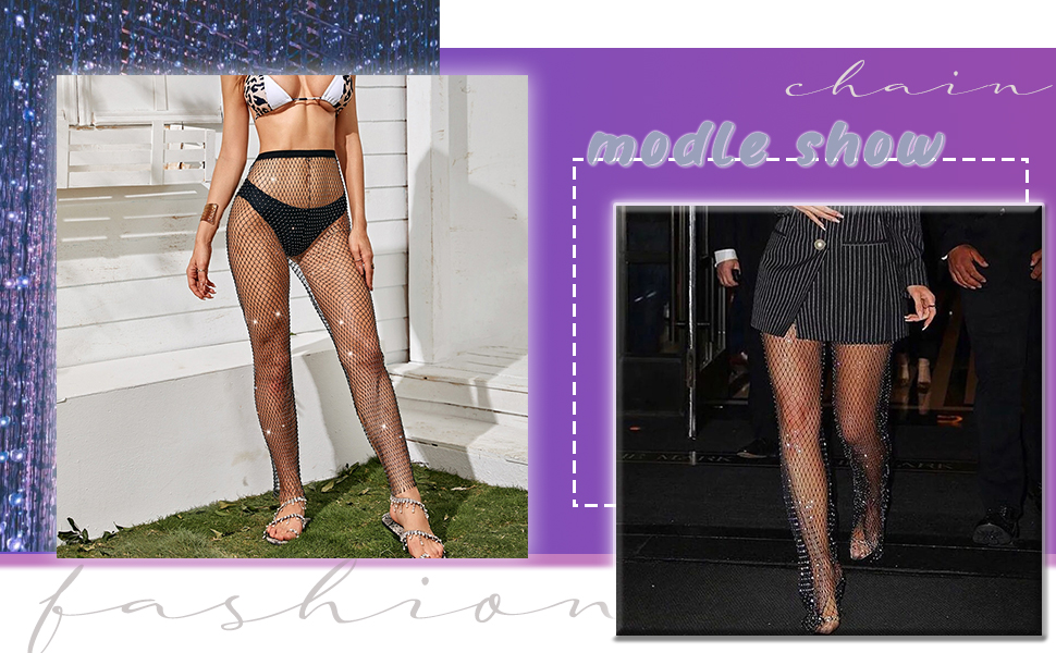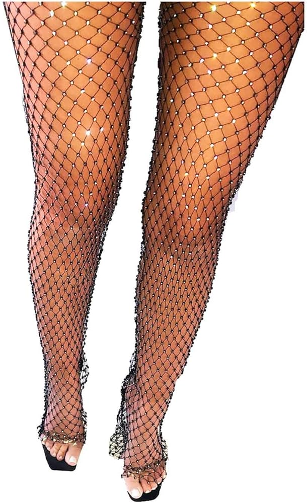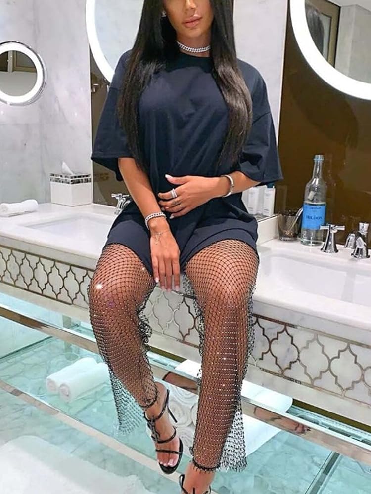 Fstrend سروال شبكي كريستالي لامع من شبكة صيد السمك، حجر الراين الأسود شفاف من خلال الجزء السفلي، بيكيني مشقوق، ملهى ليلي، حفلات الهذيان، إكسسوارات الجسم للنساء والفتيات (120 سم / 47.3 بوصة، أسود)